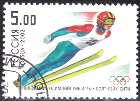 In dieser Serie aus Russland gibt es auch noch eine dritte Marke (MiNr 958) mit einem Skispringer.