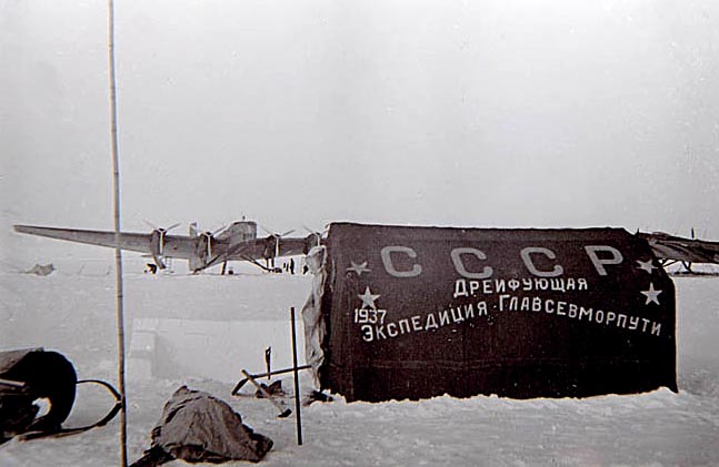Für den ersten Transpolarflug von Moskau nach Vancouver am 20.06.1937 unter Waleri Tschkalow legte die Expedition einen Notlandeplatz an.