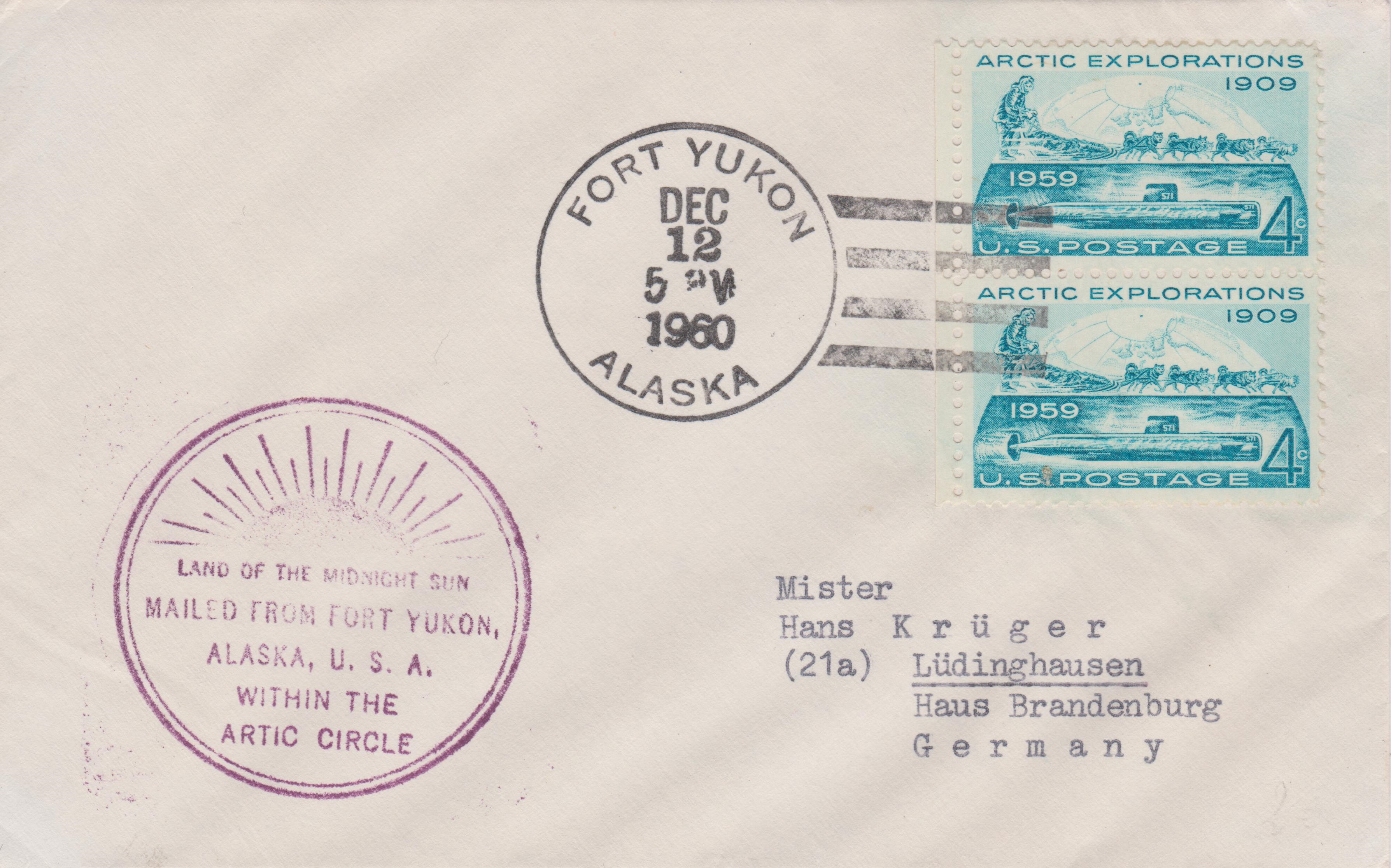 Dieser nach Lüdinghausen adressierte Brief wurde am 12.12.1960 in "FORT YUKON ALASKA" aufgegeben:
