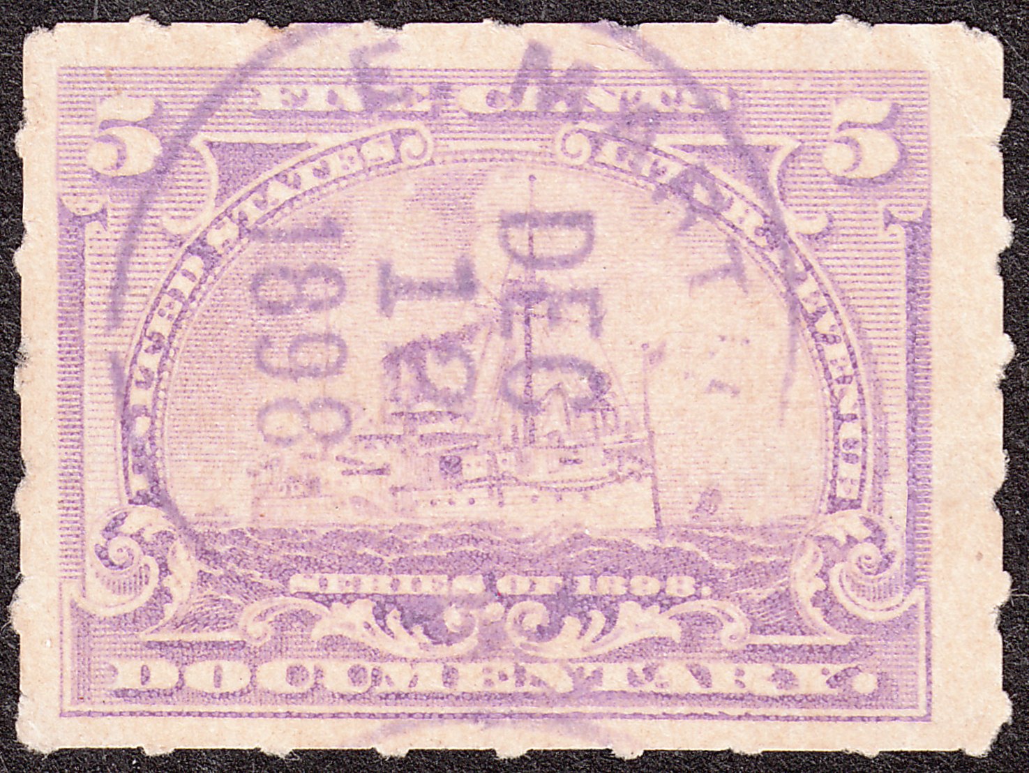 Foren-Übersicht Fragen und Diskussion Übersee Amerika Nordamerika Vereinigte Staaten von Amerika = USA USA Revenue Stamps Battleship (1898) R167 - 5 Cents lila