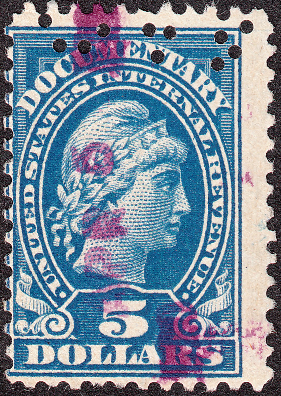 Foren-Übersicht Fragen und Diskussion Übersee Amerika Nordamerika Vereinigte Staaten von Amerika = USA USA Revenue Stamps Liberty (1914-1915) R244 - 5 Dollars dunkelblau ohne "SERIES 1914"