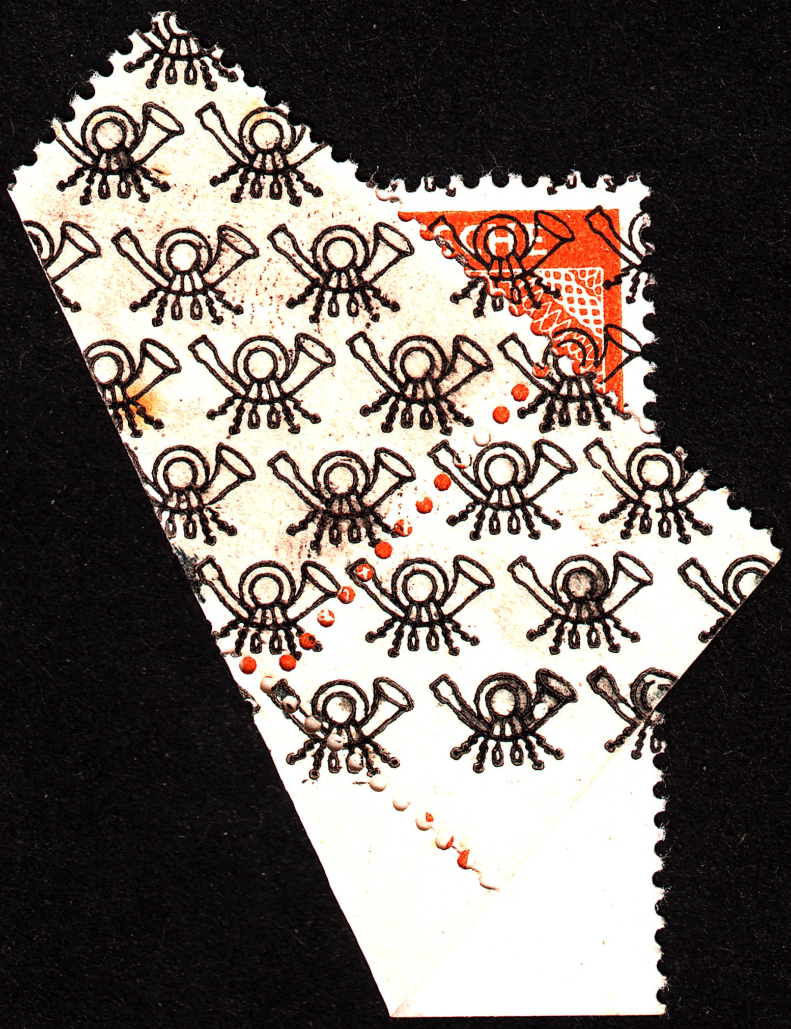 Nun braucht man das Paar nur noch an der deutlich zu erkennenden Knickstelle zu falten und man sieht, wie diese überaus markante und extrem seltene Aufdruckversion entstanden ist, nämlich schlicht und einfach durch Bogenumschlag!