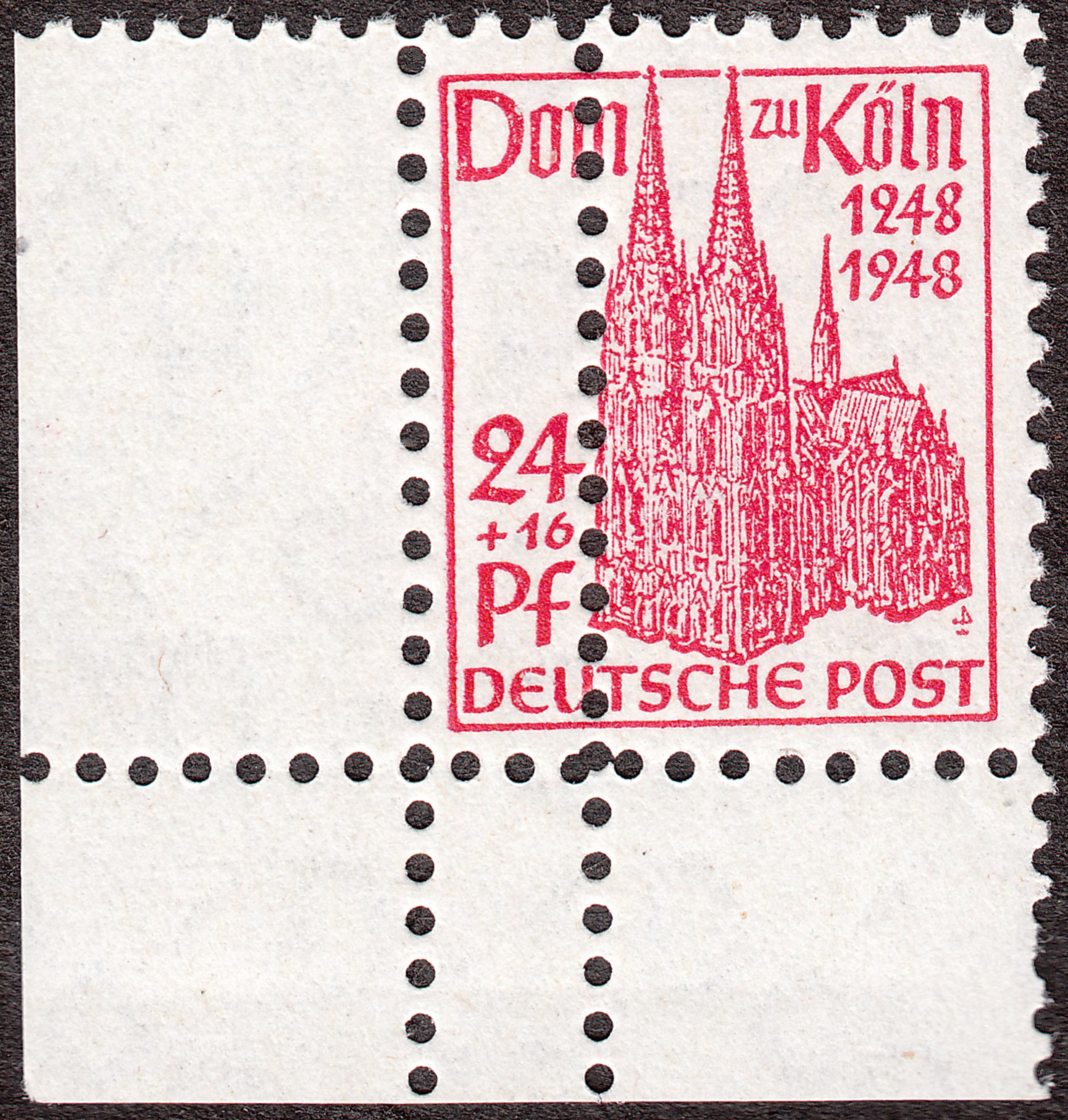 Postfrisches Exemplar der Bizone MiNr. 71 vom Eckrand 3 = Feld 91 mit zusätzlicher senkrechter Zähnung durch das Markenbild: