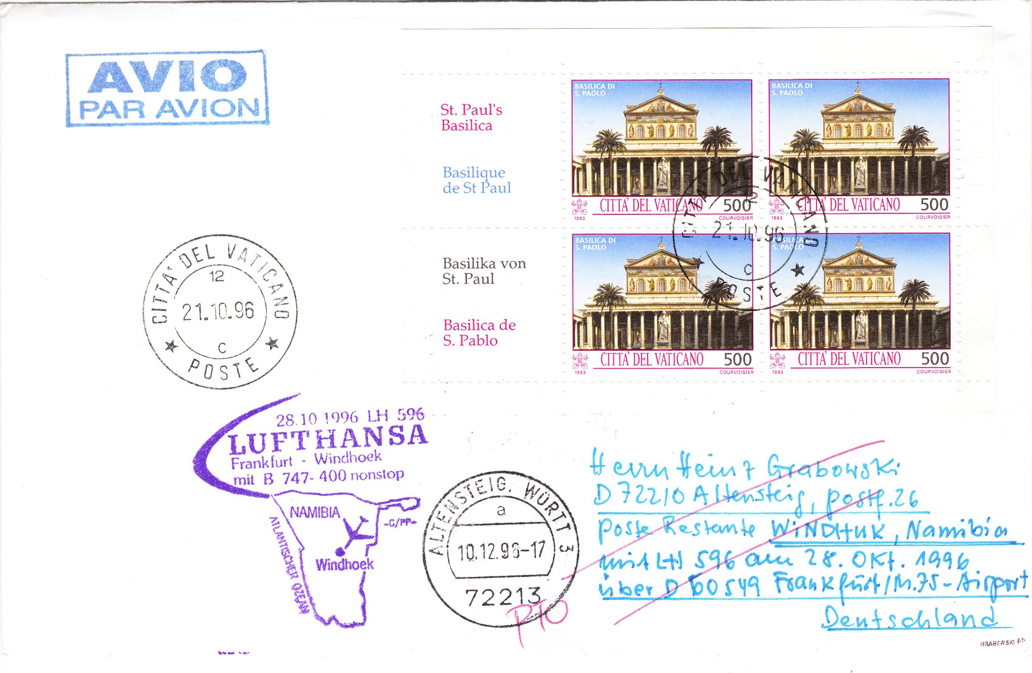 Foren-Übersicht Fragen und Diskussion Übersee Afrika Namibia Post nach Namibia Erstflug LH 596 am 28.10.1996 von Frankfurt nach Windhoek