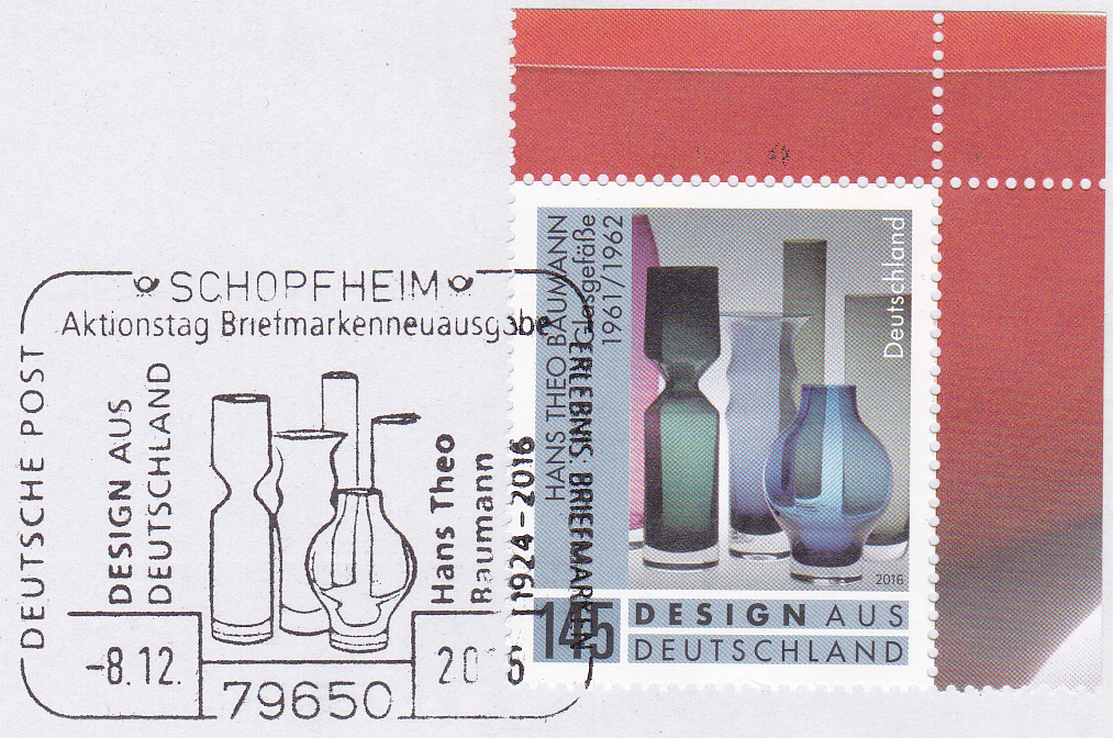 Bei der Deutschen Post AG ist eine Marke (MiNr 3272) mit Glasgefäßen aus den Jahren 1961/62 von Theo Baumann erschienen.