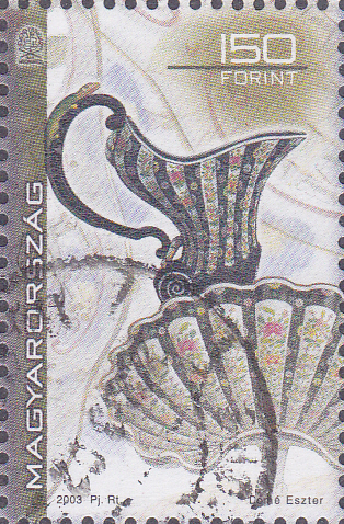 In Ungarn ist diese Marke (MiNr 4760) mit einem Durchbrochener Zierteller mit Blumendekor und einem Frankenthaler Kaffeeservice.