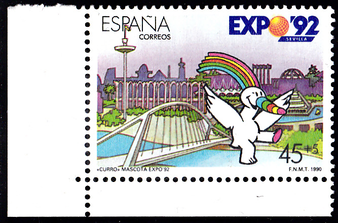 Am 22.2.1990 erschien in Spanien zur EXPO 92 in Sevilla eine Serie mit Zuschlagsmarken. Als Motiv diente das Maskottchen Curro im Ausstellungsgelände in Sevilla.