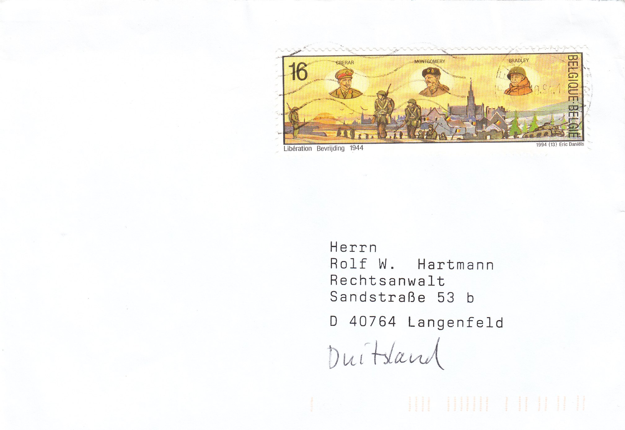 Frankreich und Belgien wurden tatsächlich bis zum September 1944 befreit, was dieses zum 50. Jahrestag dieses Ereignisses erschienene Postwertzeichen dokumentiert: