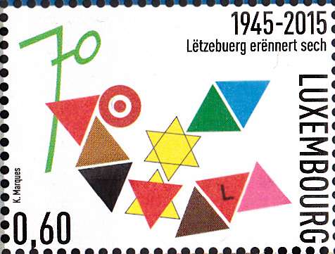 In Luxemburg erschien zum 70. Jahrestag der Beendigung des Zweiten Weltkriegs ein Block mit sechs Marken mit Abbildungen von zum Thema passenden Graphiken und Gemälden.