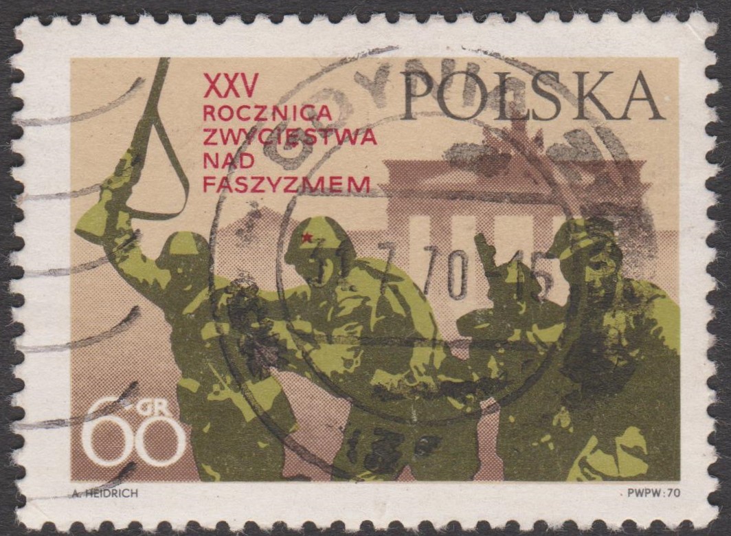 Dieses am 09.05.1970 erschienene Postwertzeichen Polen MiNr. 1999 feiert den 25. Jahrestag der Beendigung des Zweiten Weltkrieges: