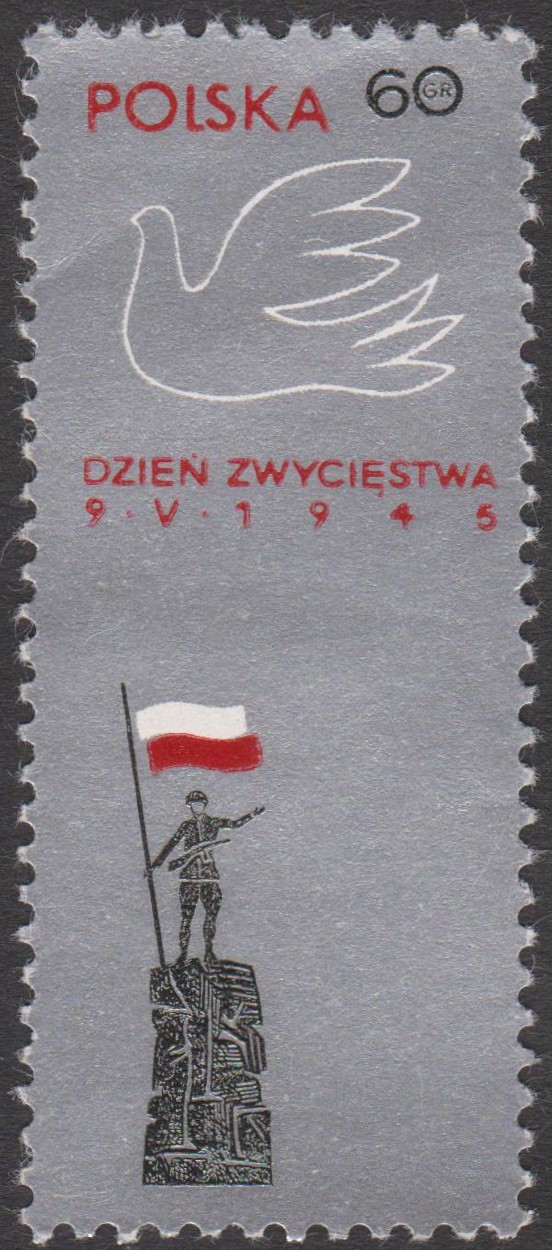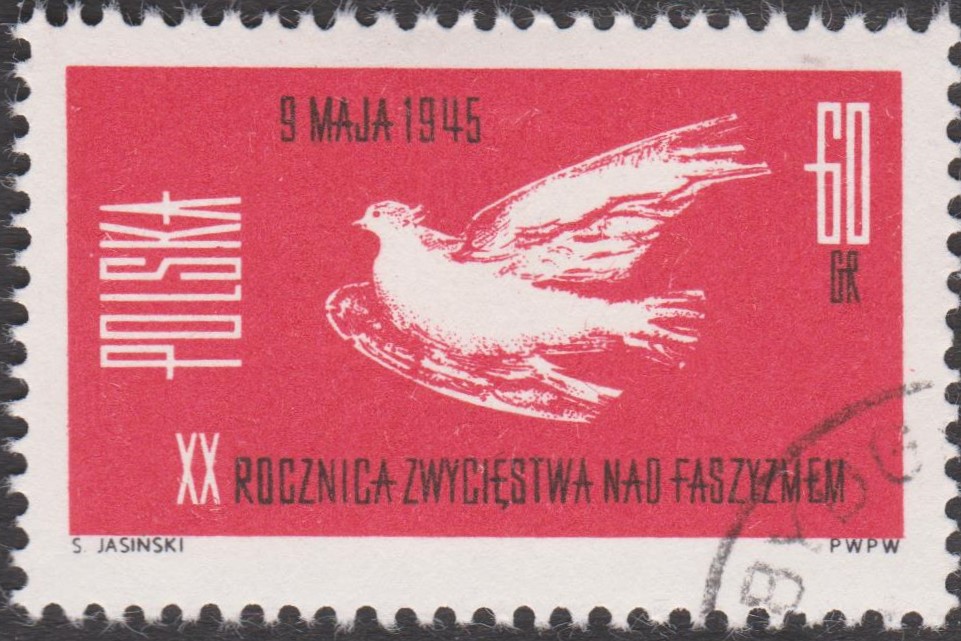 Dieses am 08.05.1965 erschienene Postwertzeichen Polen MiNr. 1582 feiert den 20. Jahrestag der Beendigung des Zweiten Weltkrieges am 09.05.1945: