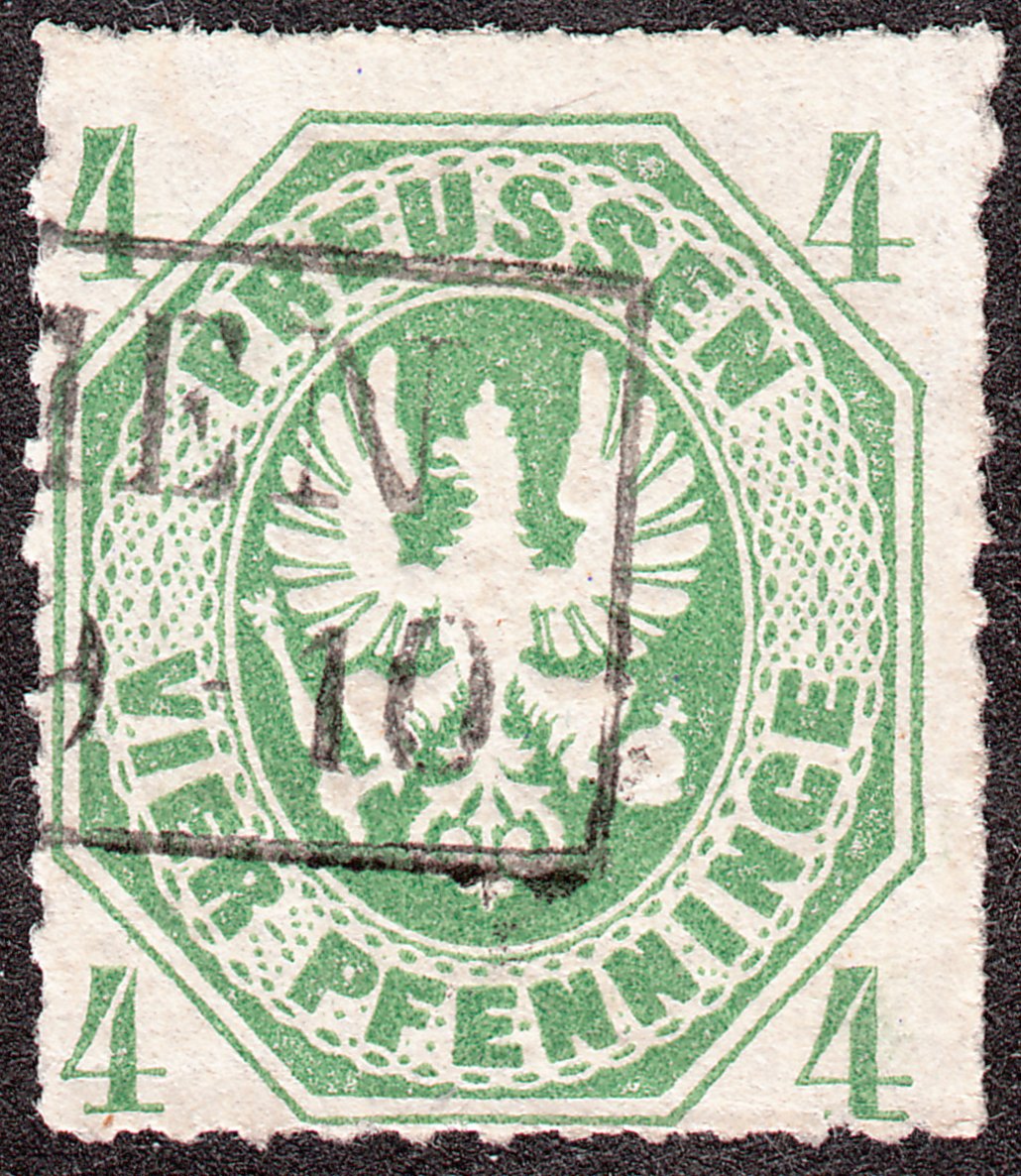 Los geht es mit diesem am 01.12.1861 erschienenen Wert zu 1 Silbergroschen mit dem Motiv "Preußischer Adler im Oval", MiNr. 16 a, entwertet mit einem Zweikreisstempel "BAHNHOF" sowie "4", bei dem ich davon ausgehe, das er aus "CÖLN" = Köln stammt: