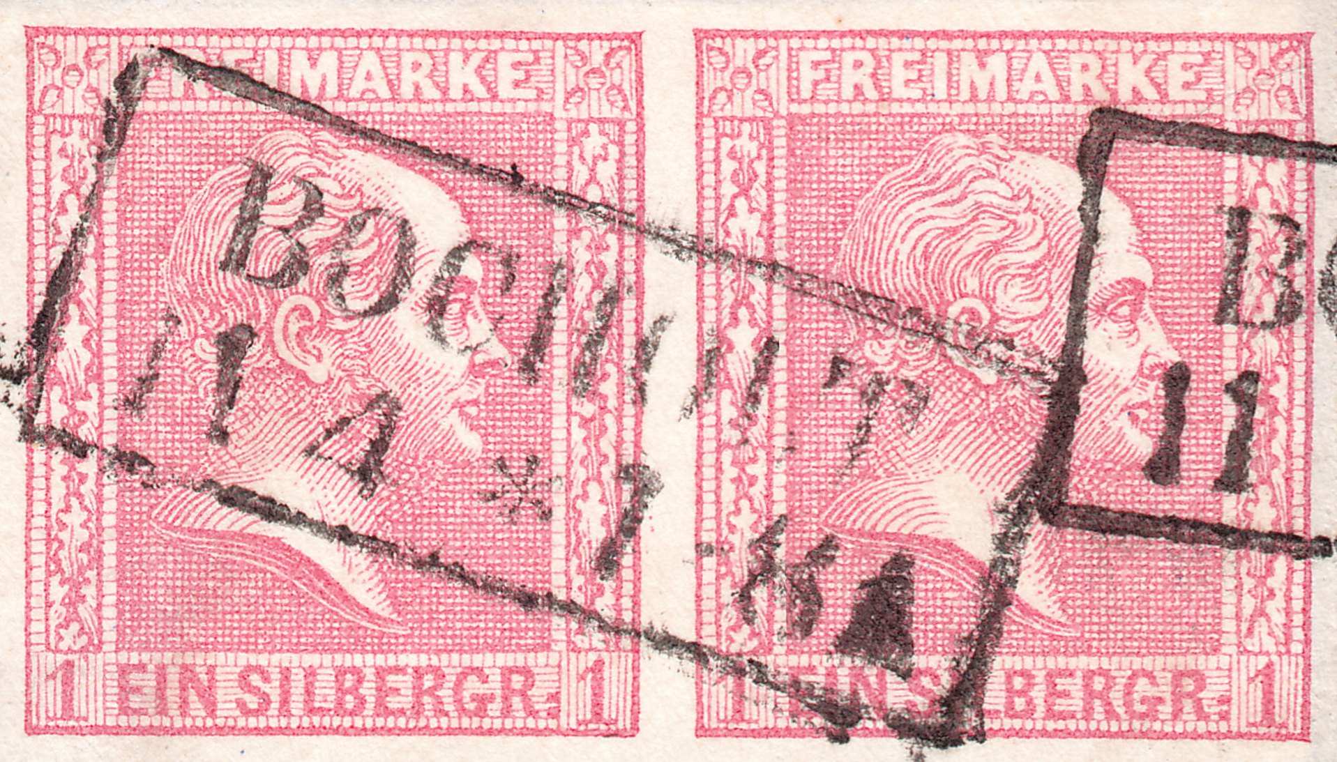 MiNr. 10 im Paar mit Rahmenstempel "BOCHOLT 11 4 * 7-8 A":