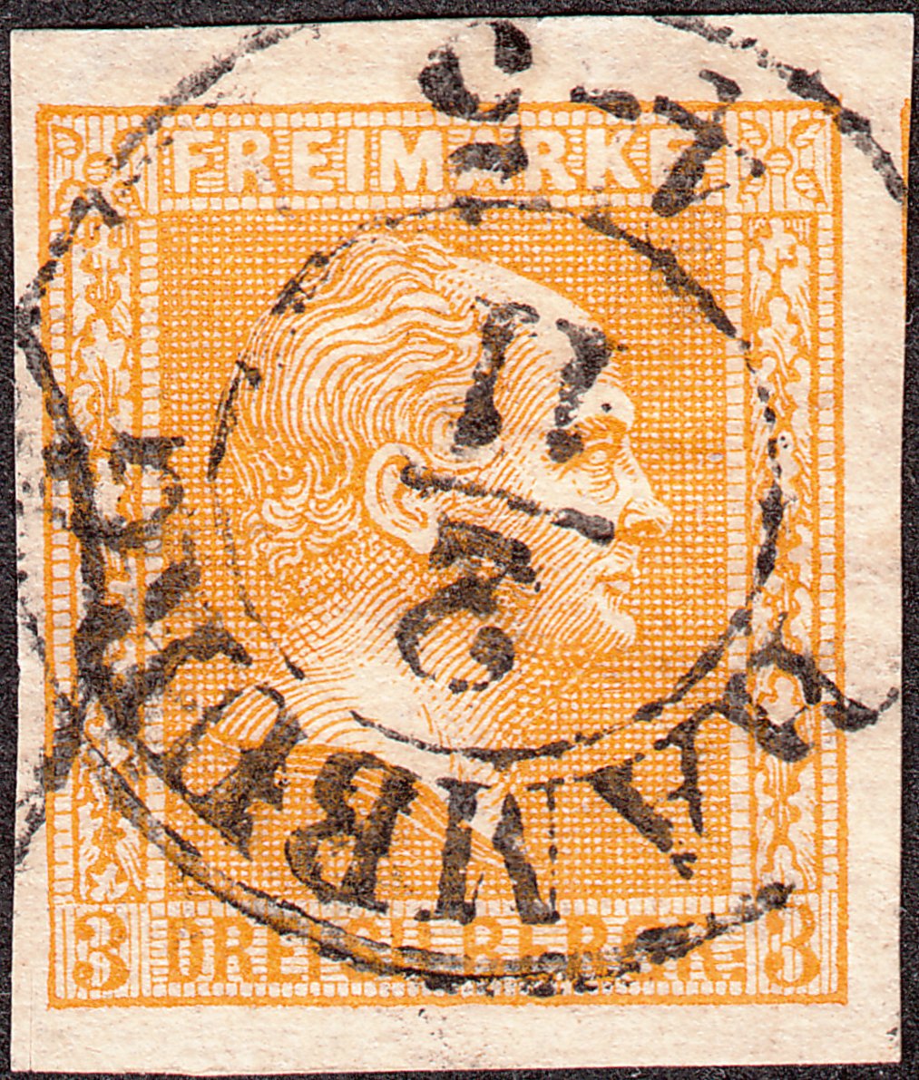 MiNr. 12 mit Zweikreisstempel HAMBURG
