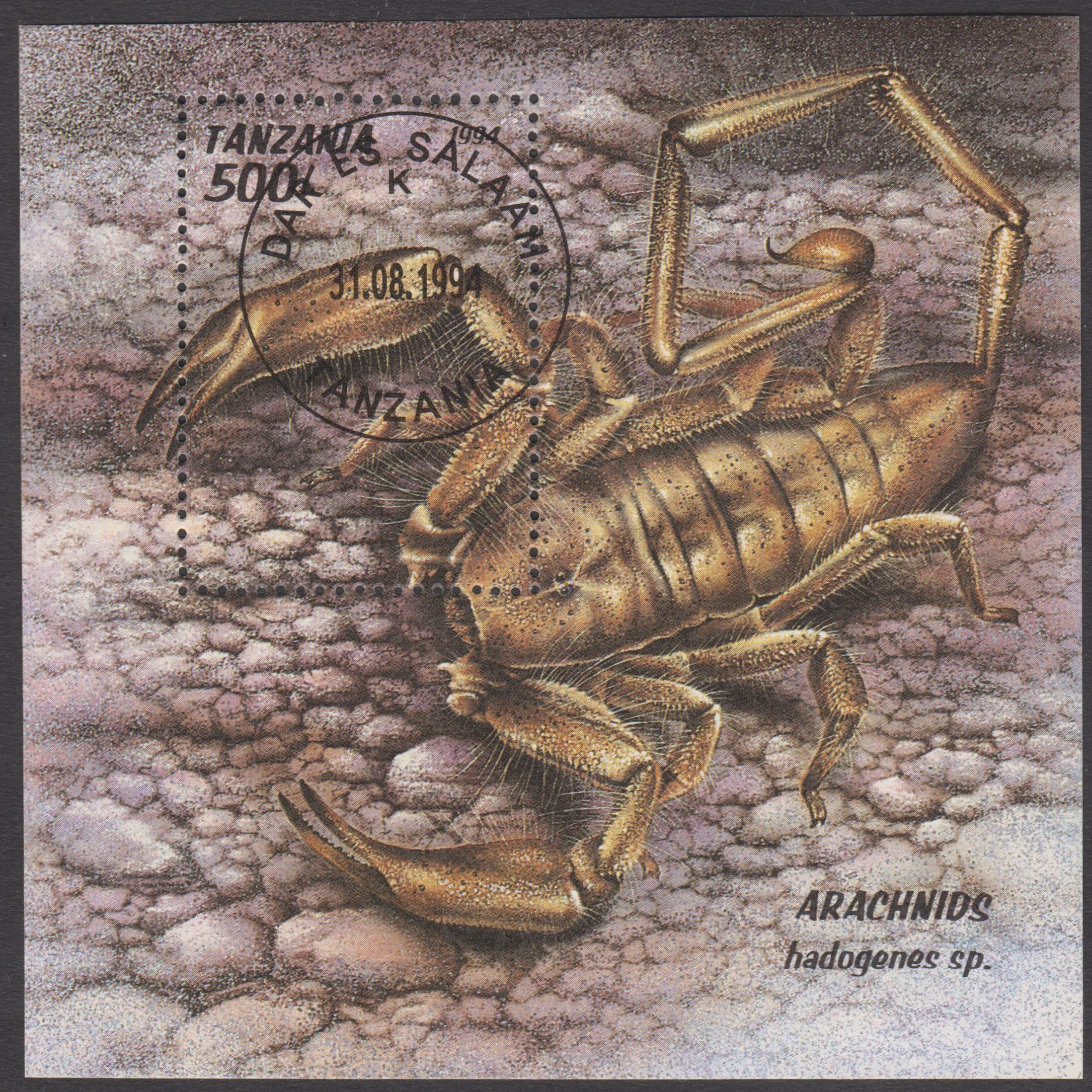 Auf einer Marke aus Togo (MiNr 389) wird uns ein Kaiserskorpion (Pandinus imperator) vorgestellt.