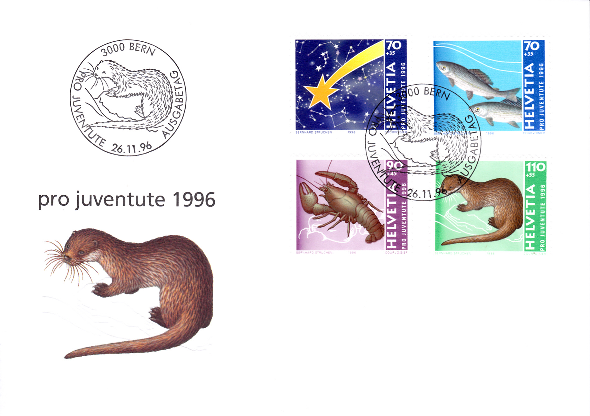 Auf einer Marke aus Liechtenstein (MiNr 644) wird ein Edelkrebs oder Europäischer Flusskrebs (Astacus astacus) gezeigt.