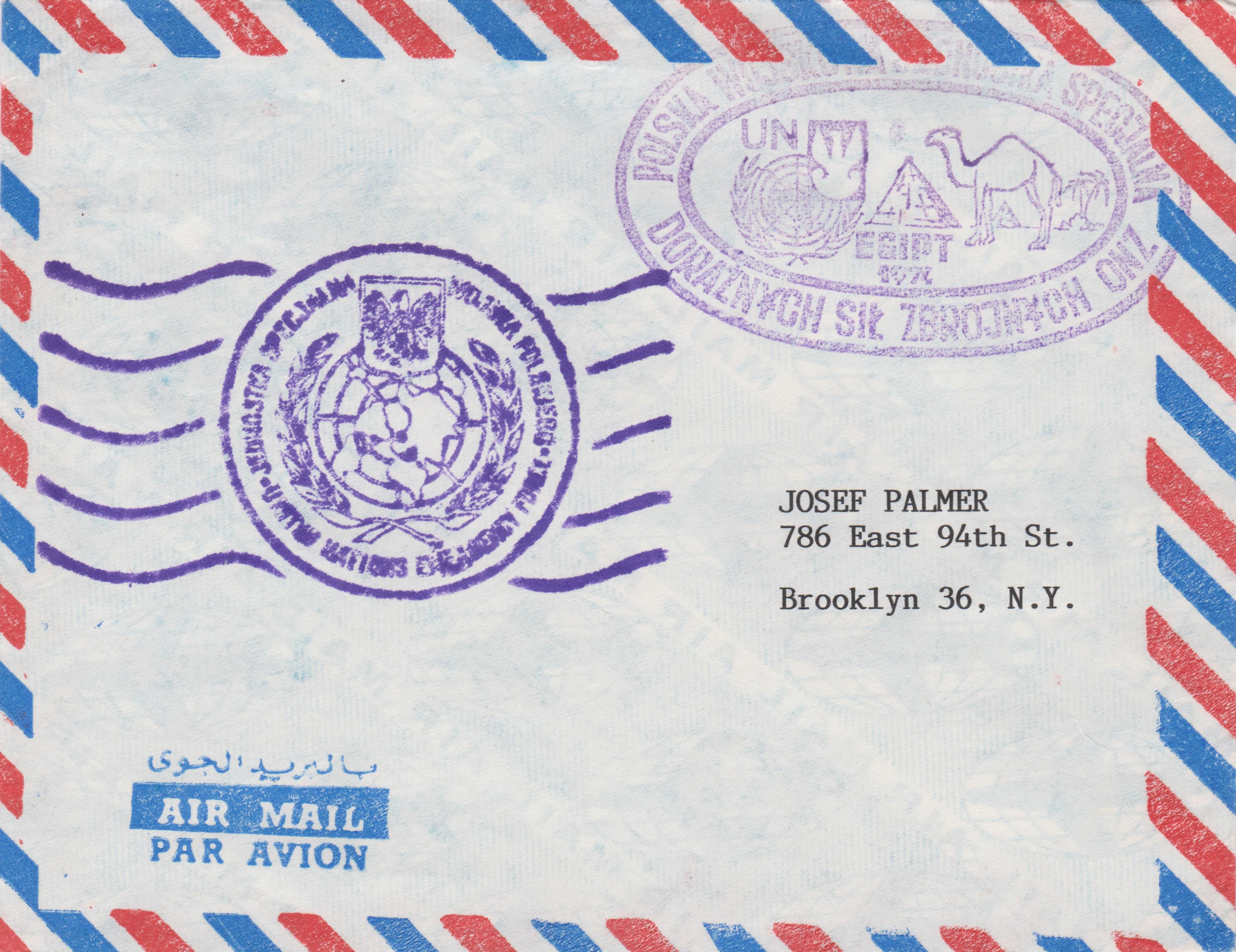 Dieser Brief in die USA zeigt die bei UNEF II eingesetzten Stempel für die polnischen Soldaten: