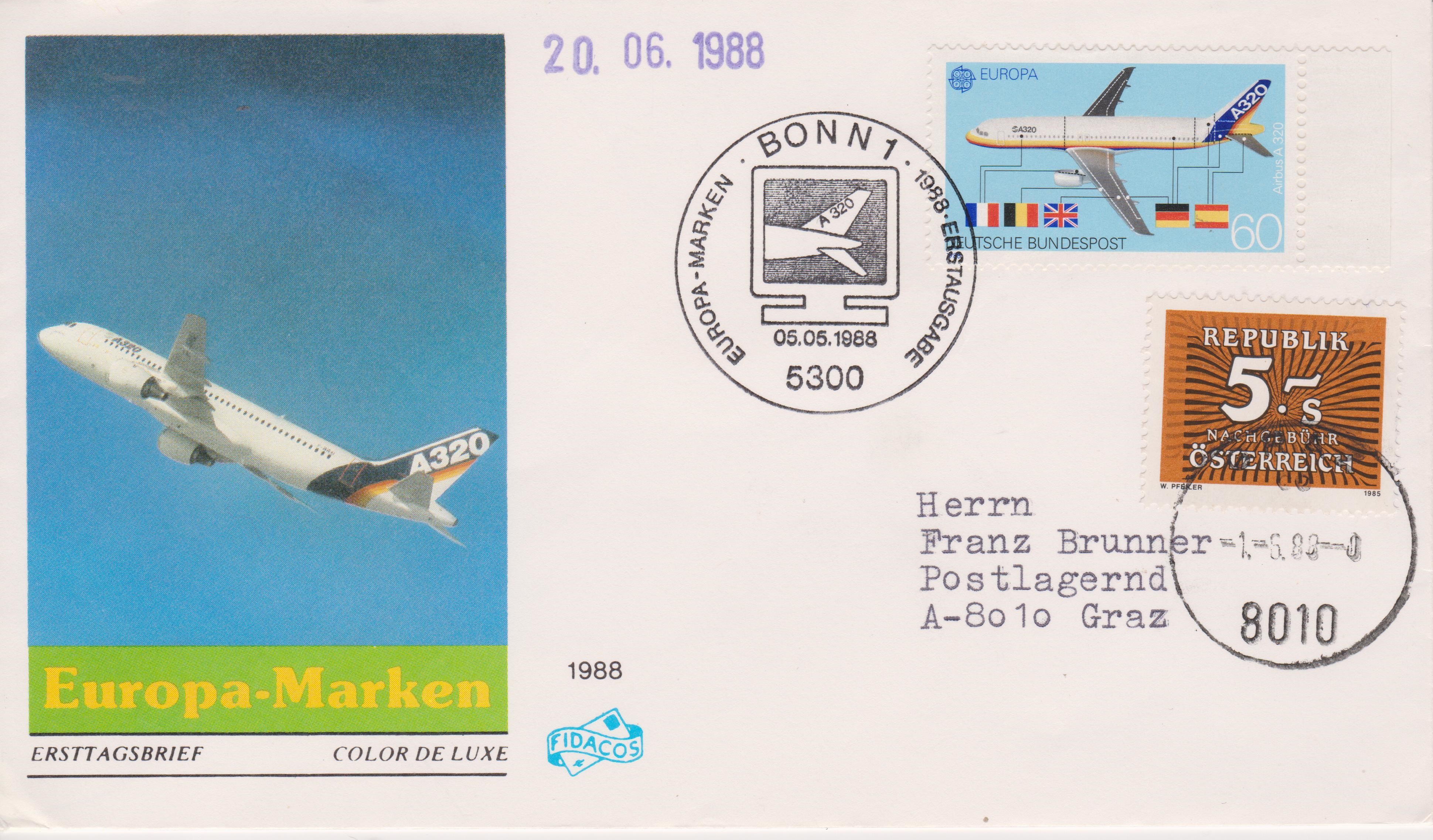 Ersttagsbrief der Bund MiNr. mit ESST 05.05.1988, adressiert "Postlagernd A-8010 Graz":