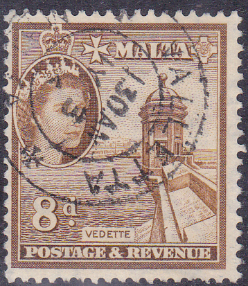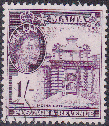 Die Marke zu 1Sh (MiNr 247) zeigt das Stadttor in Mdina. Mdina Tor ist das wichtigste Tor in die befestigte Stadt Mdina, Malta. Es wurde 1724 im Barockstil nach Entwürfen von Charles François de Mondion während der Magistratur des Großmeisters António Manoel de Vilhena erbaut.
