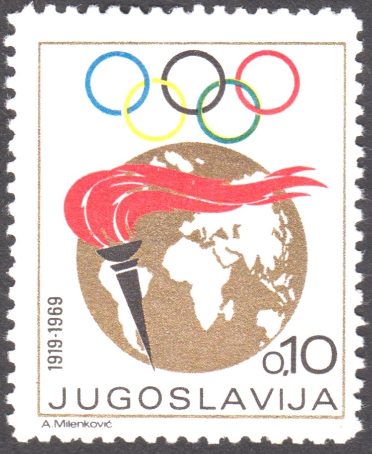 Diese als Zwangszuschlagsmarke MiNr. 37 katalogisierte Ausgabe "Olympische Woche" erschien in Jugoslawien am 24.11.1969 in einer Auflage von 8 000 000 Stück: