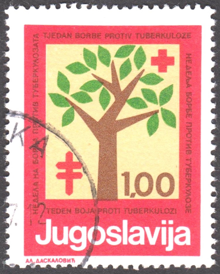 Diese als Zwangszuschlagsmarke MiNr. 57 katalogisierte Ausgabe "Rotes Kreuz: Woche der Tuberkulose-Bekämpfung" erschien in Jugoslawien am 14.09.1977 in einer Auflage von 3 000 000 Stück: