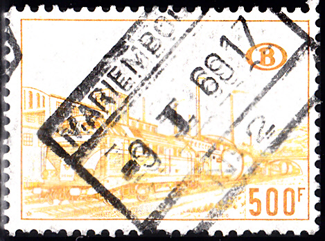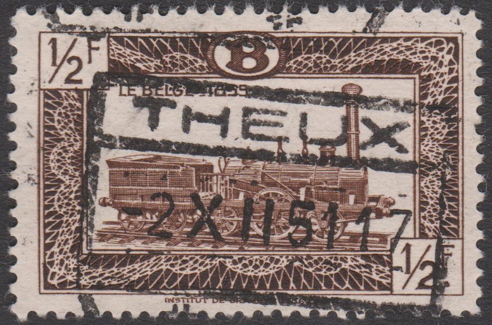 Diese Eisenbahnpaketmarke aus der Ausgabe von 1949 mit Abbildungen von "Belgische Lokomotiven" in der Wertstufe zu 1/2 Franc ist als MiNr. 278 A katalogisiert. Die Marke zeigt "LE BELGE" ("Der Belgier") die erste Dampflokomotive Kontinentaleuropas, die nicht aus England importiert, sondern auf dem europäischen Festland gebaut wurde. Sie verließ am 30. Dezember 1835 die Fabriken von John Cockerill in Seraing bei Lüttich in Belgien, wo sie als Lizenznachbau der Lokomotiven von Stephenson unter Mitarbeit des deutschen Mechanikers Johann Heinrich Ehrhardt gefertigt worden war.