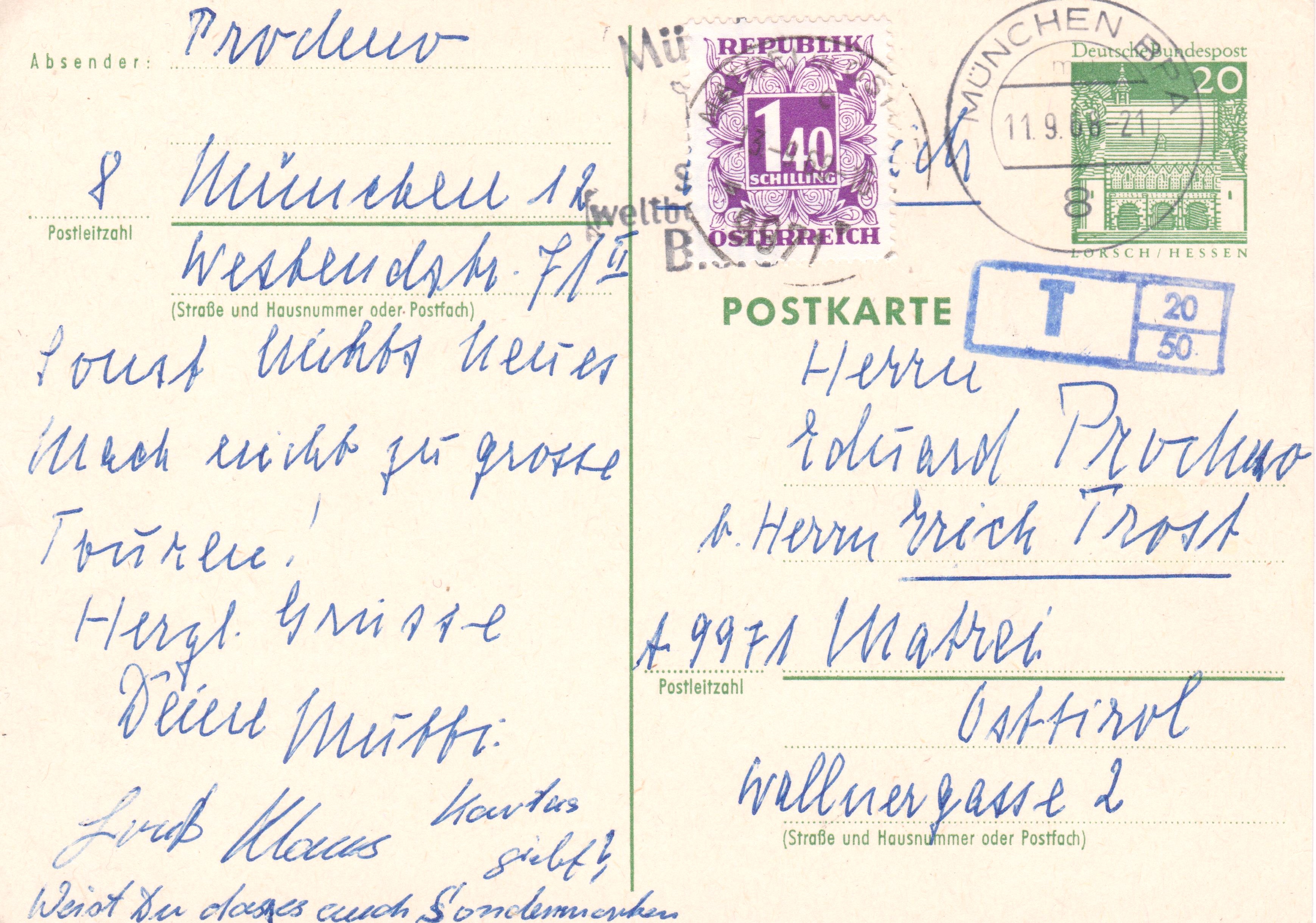 Die Post in Deutschland brachte einen Taxstempel "T 20/50" an.