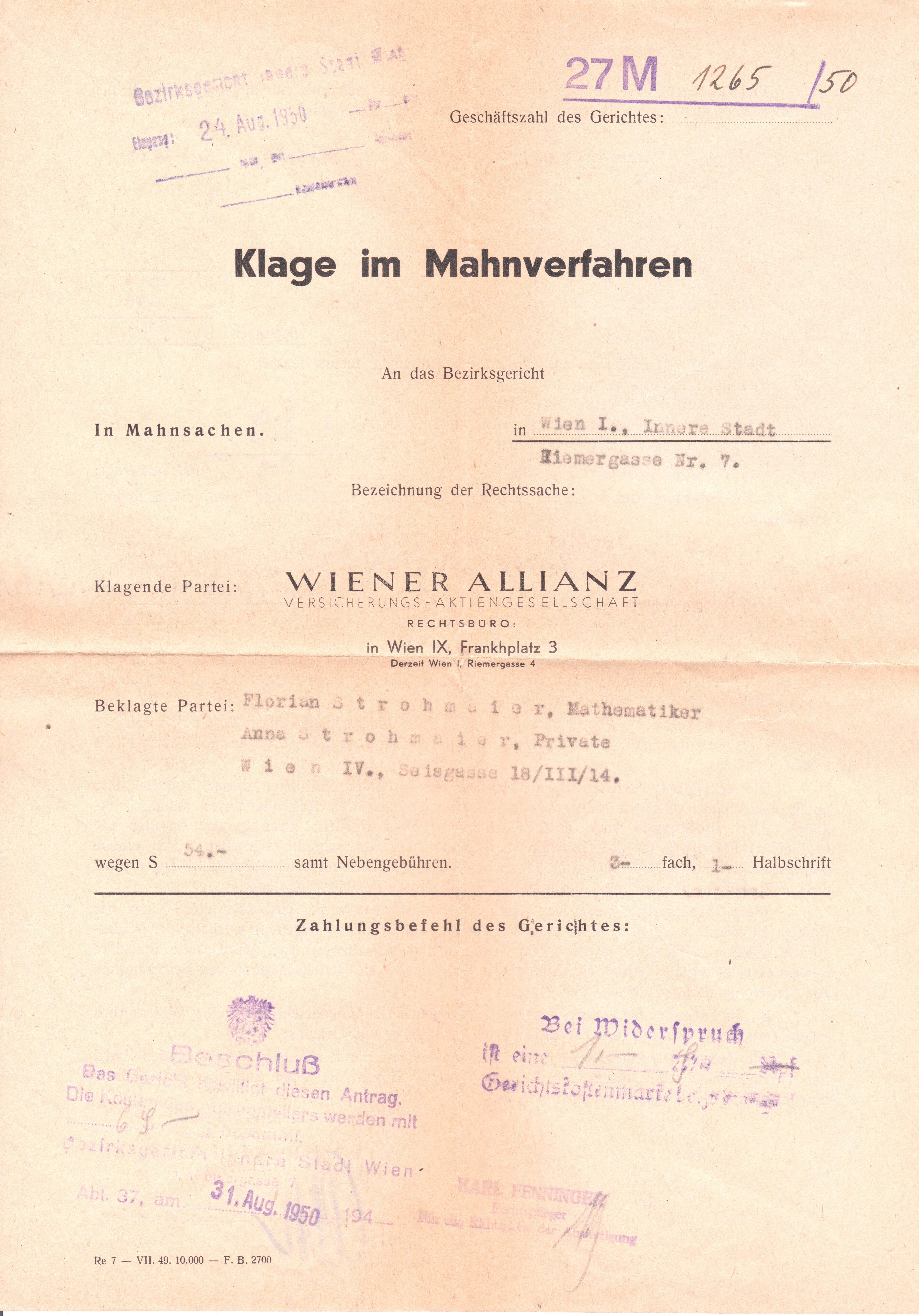 Laut einzeiligem Datumstempel wurde dieser Brief in Wien gelagert.