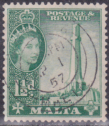 Die Marke zu 1 1/2 Pence (MiNr 240) zeigt das in Floriana errichtete Soldatendenkmal "Malta Memorial", das an 2.298 britische und Luftwaffenangehörige der Commonwealth-Nationen ohne bekanntes Grab erinnert, die im Zweiten Weltkrieg im Mittelmeer oder in und um Afrika ihr Leben im Dienst der Luftstreitkräfte verloren haben.