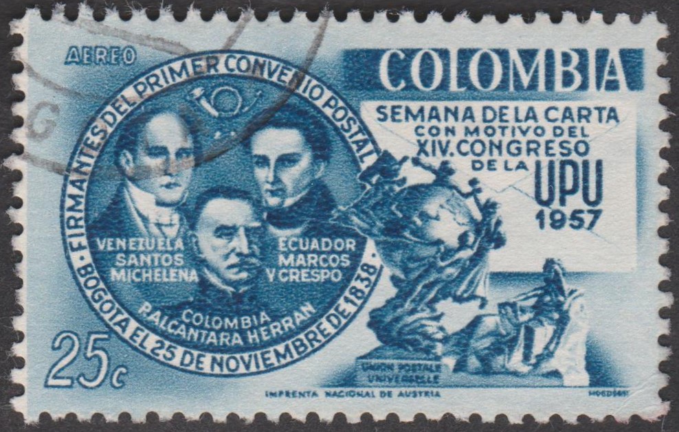 Dieses Postwertzeichen Kolumbien MiNr. 821 zeigt das UPU-Denkmal Bern: