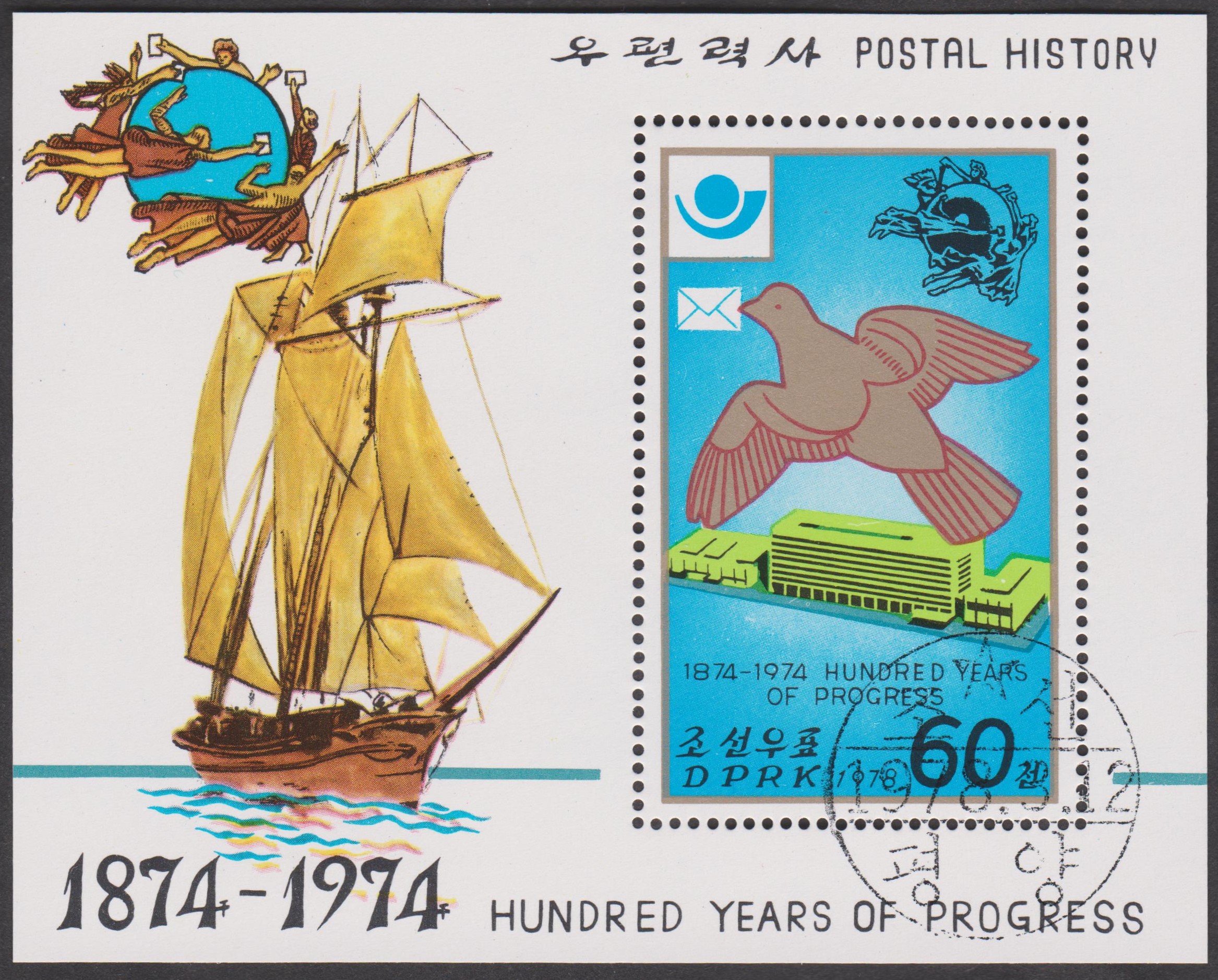 Nordkorea Block 45 A mit MiNr. 1700 zeigt das UPU-Gebäude in Bern: