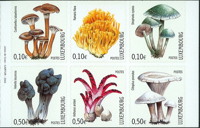 2004 gab die luxemburger Postverwaltung ein Markenheftchen mit 6 verschiedenen und farbenfrohen Pilz-Motiven heraus. Die Einzelmarken sind selbstklebend.