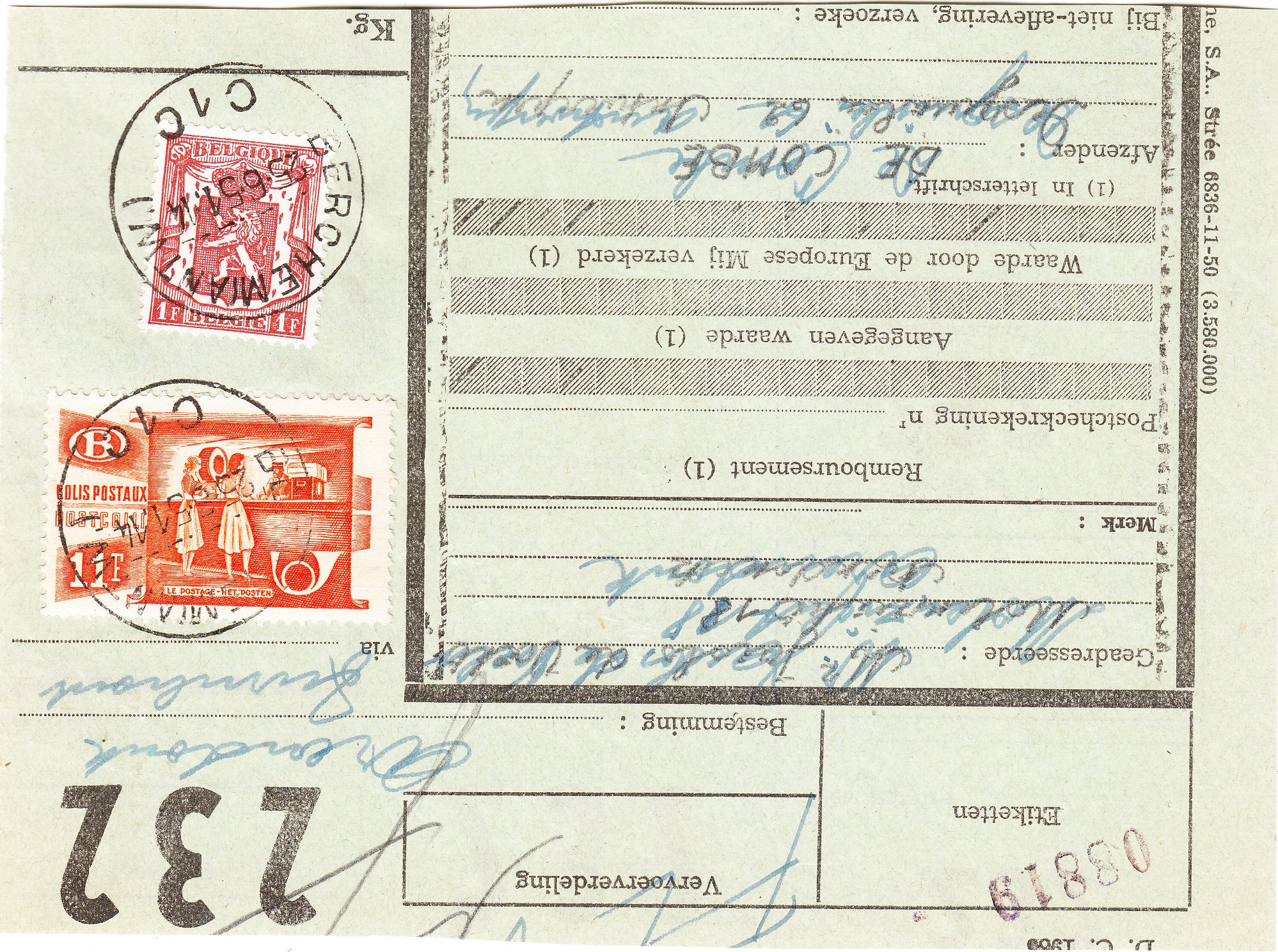 In Belgien konnte ich jetzt bei einem Händler aus einer Grabbelkiste gleich 5 solche Belege wie diesen hier "sicherstellen":