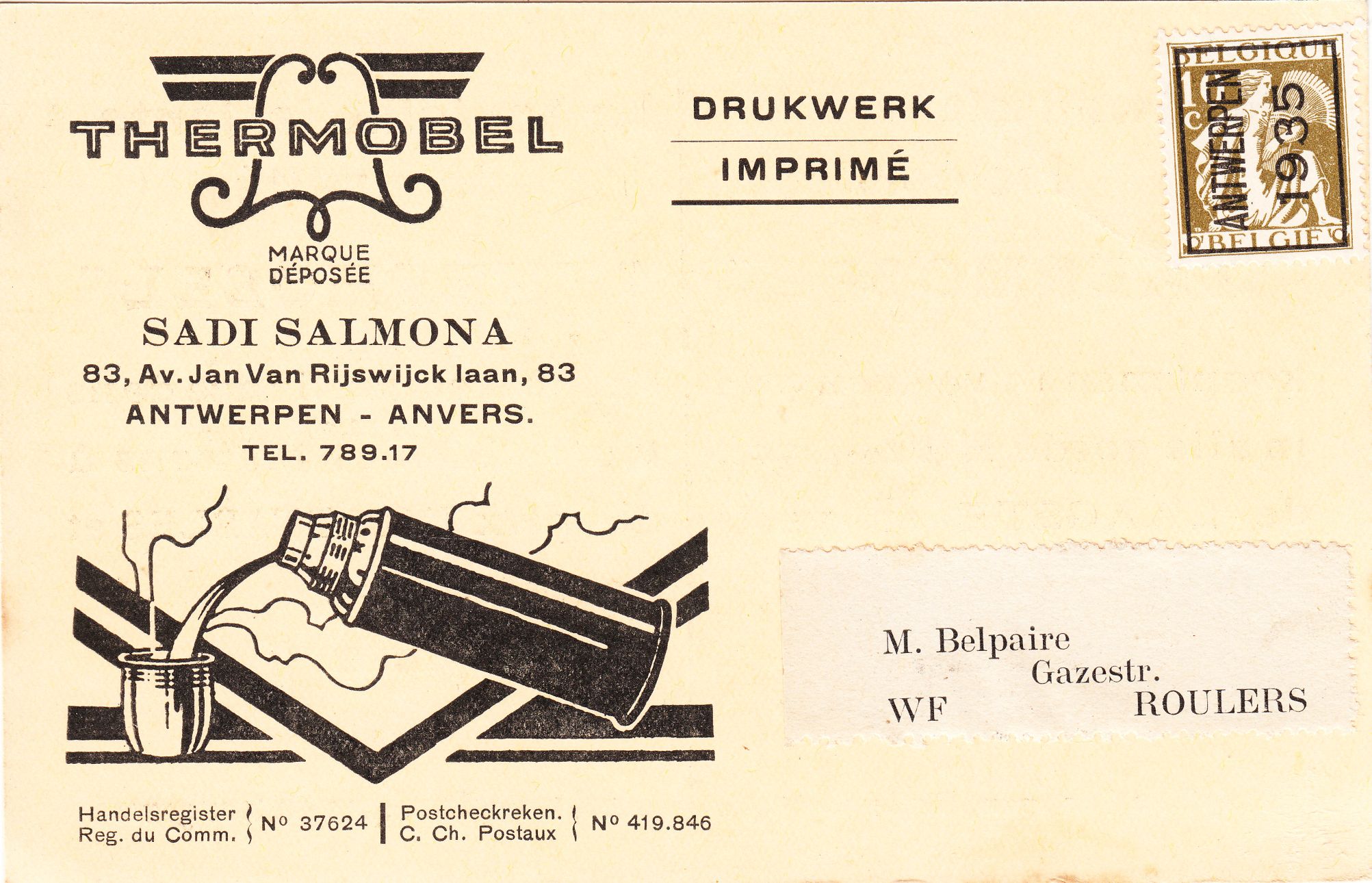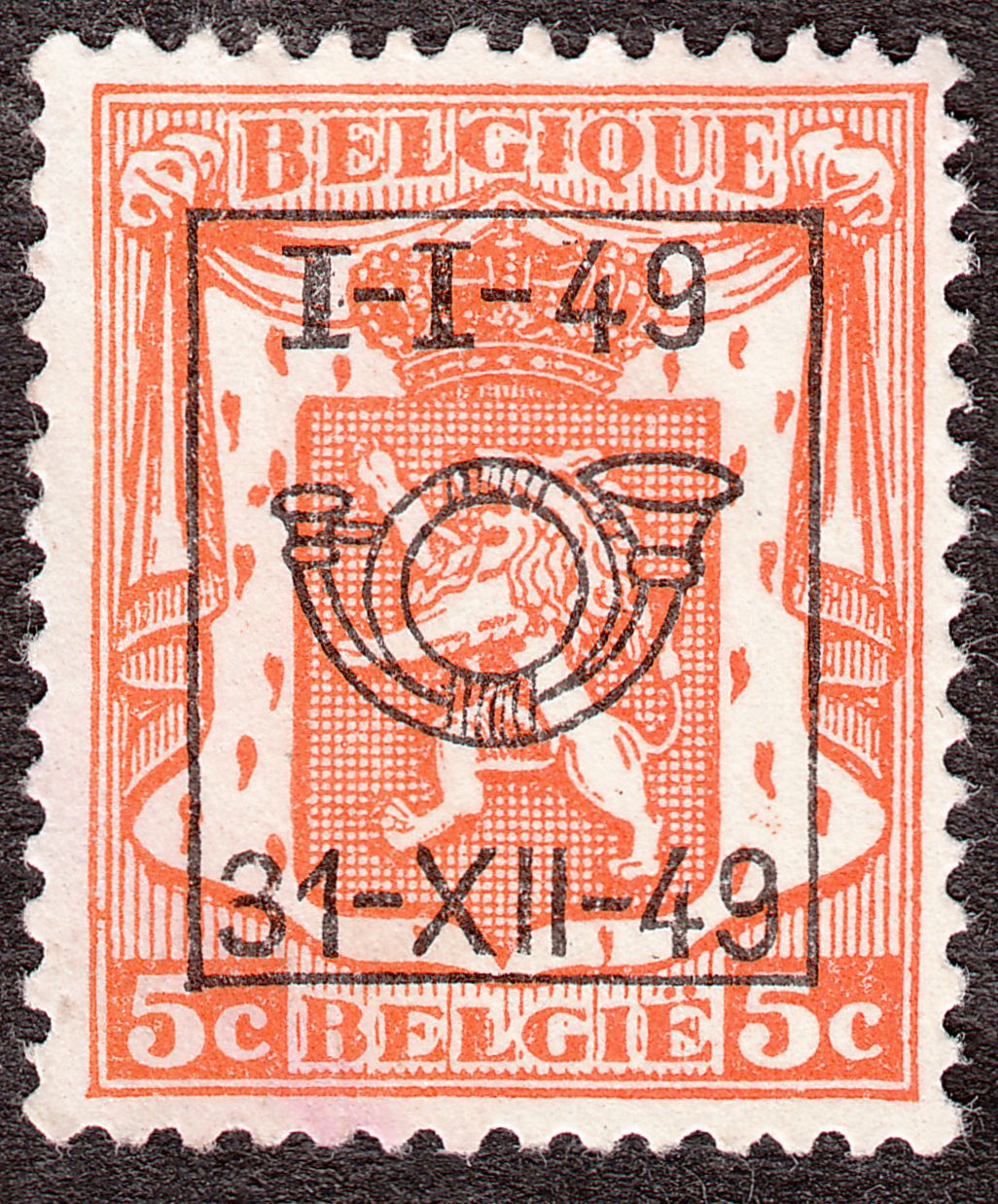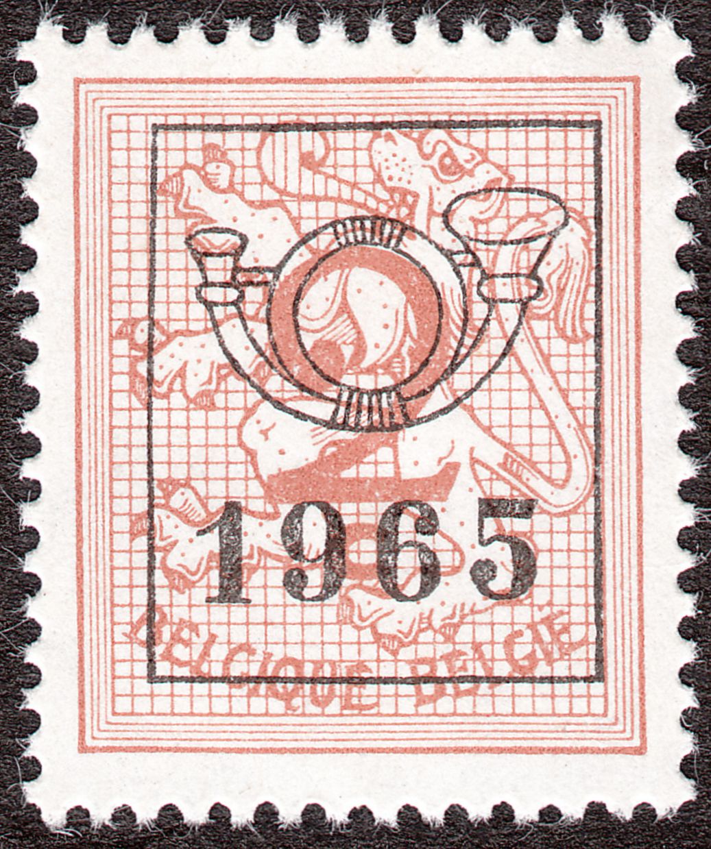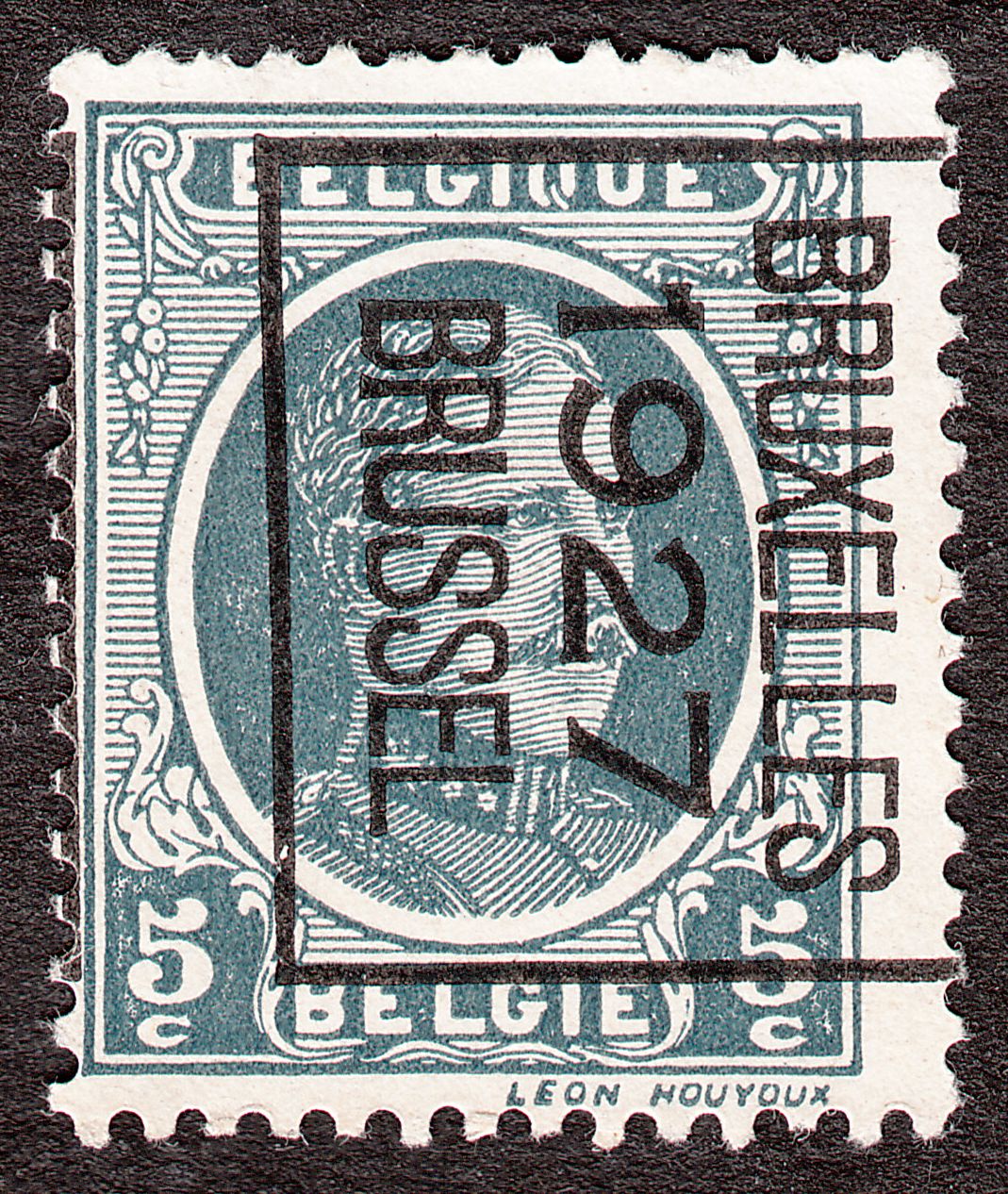 Mit dem Aufdruck der Vorausentwertung in Buchdruck in der Aufdrucktype b 6 wurde daraus von 1959 bis 1966 die Belgien MiNr. 1174 x A V I, hier ein Exemplar von 1963: