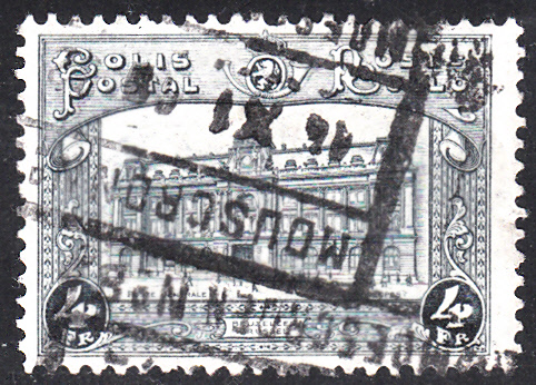 Diese Postpaketmarke aus der Ausgabe 1929/1930 mit der Abbildung "Hauptpost in Brüssel" ist unter der MiNr 4 katalogisiert.