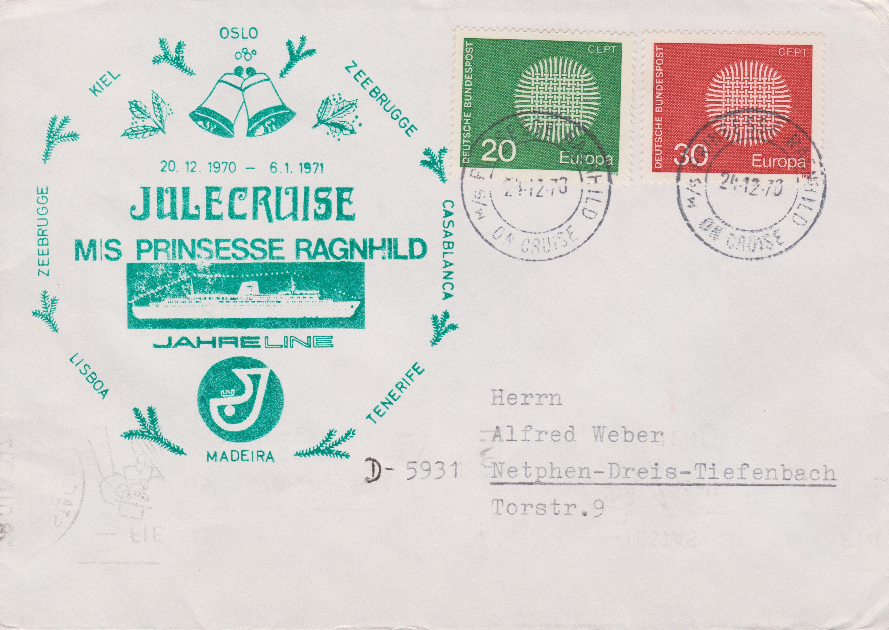 Am 09.11.2012 wurde die deutsche Frankatur auf dem Beleg dann in Himmelpfort per Sonderstempel entwertet, am 10.11.2012 die Frankatur aus der Schweiz in Engelburg und am 30.11.2012 schließlich die österreichische Frankatur in Maria Saal.