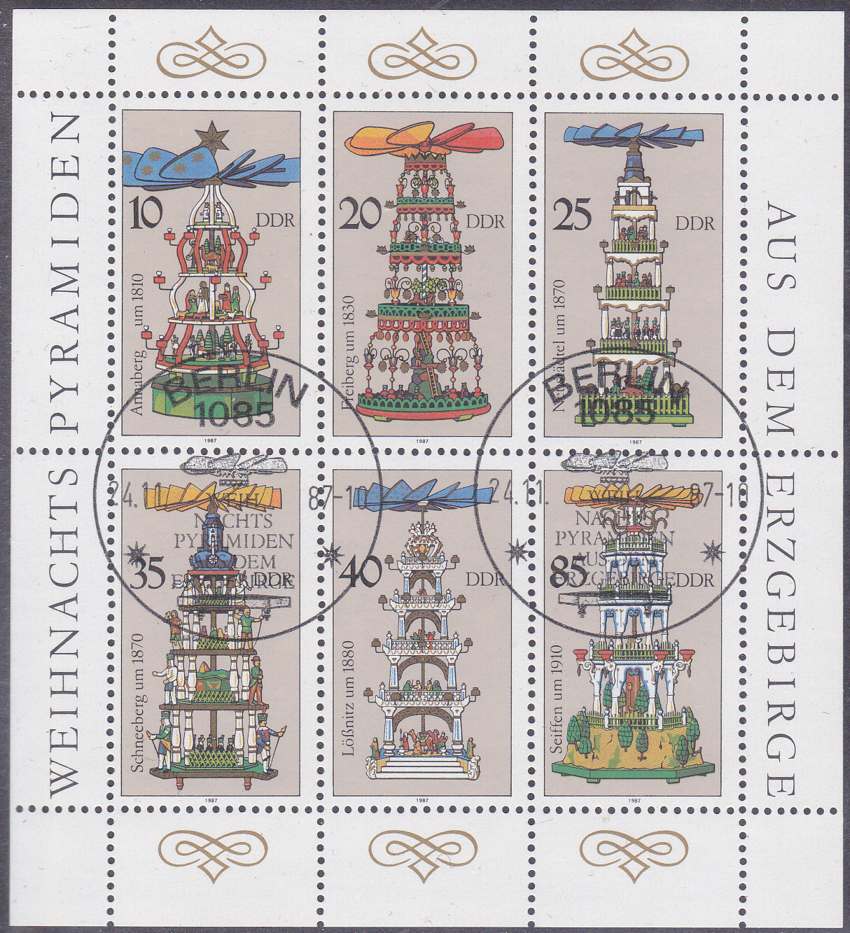 Die in diesem Sonderstempel vom 07.112.2014 dargestellte Globensteiner Weihnachtspyramide ist eine Besonderheit: