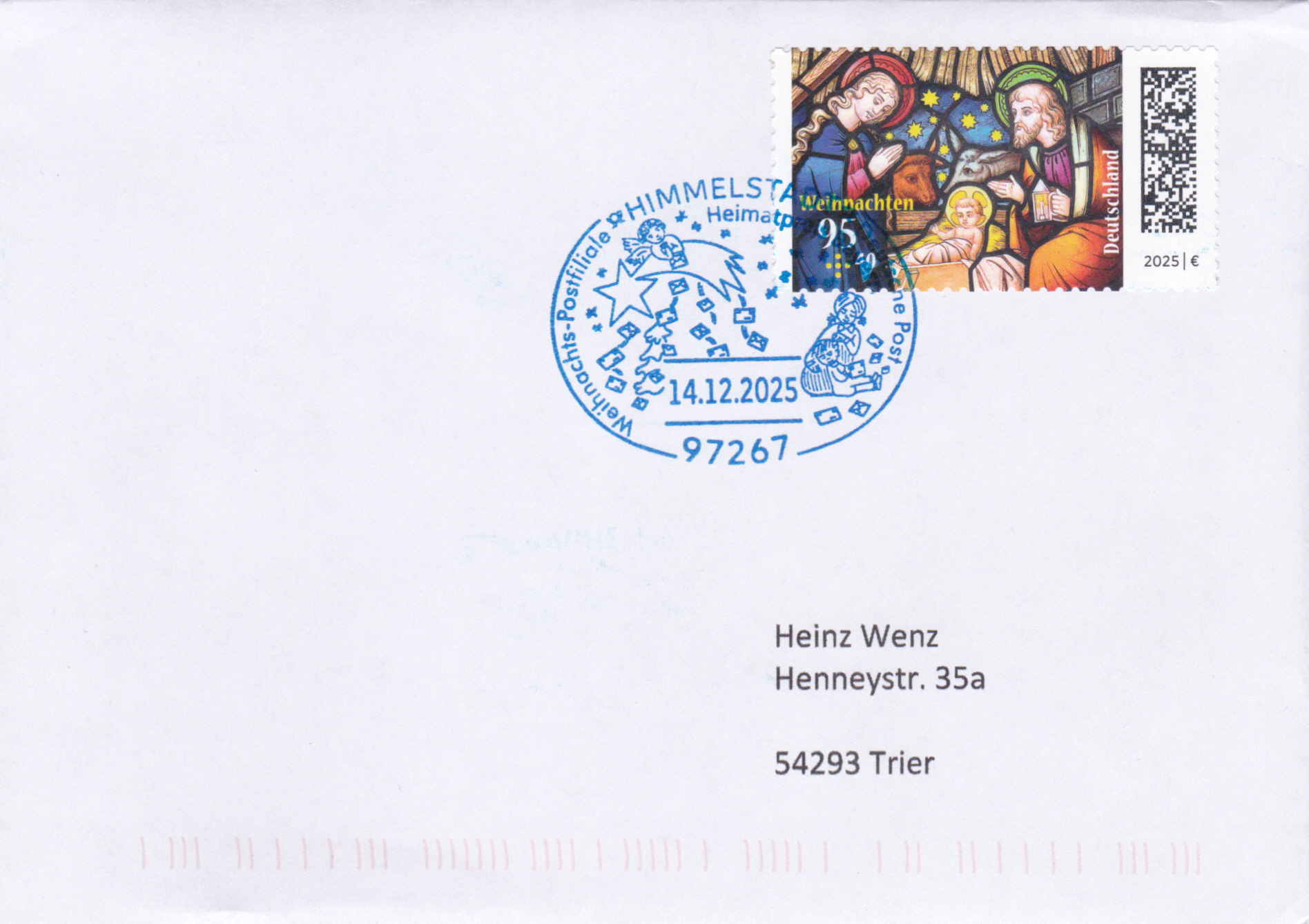 Die Firma SIEGER "wünscht Fröhliche Weihnachten" mit einem Harfe spielenden Weihnachtsengel auf diesem Absenderentwerterstempel, Portostufen 35 Pf aus 1983 und 1984: