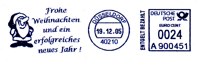 Freistempel aus Düsseldorf mit Zusatz "Entgelt bezahlt".