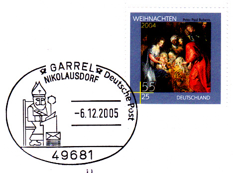 Im Sonderstempel von 2005 ist ein Briefe beantwortender Nikolaus abgebildet.