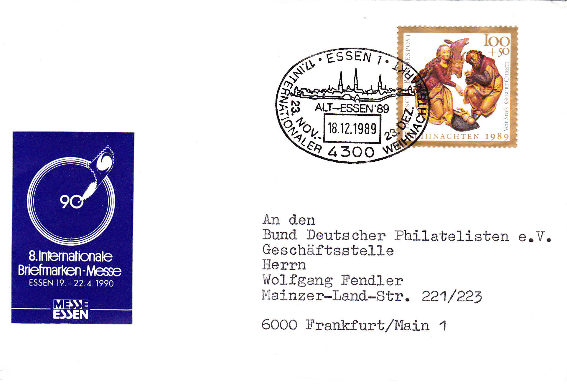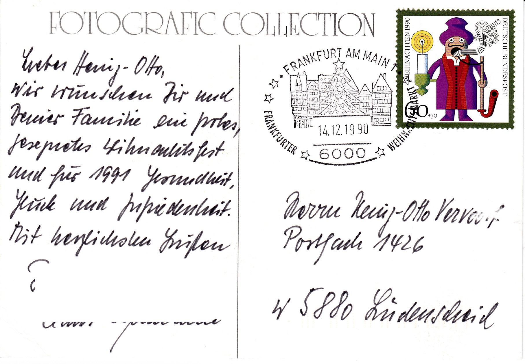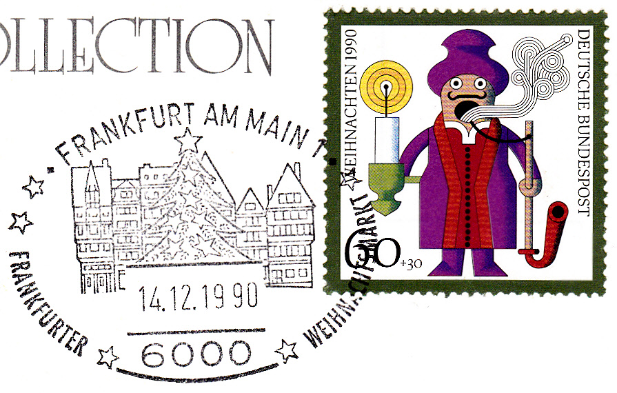 Dieser Sonderstempel aus Frankfurt vom 14.12.1990 zum Frankfurter Weihnachtsmarkt 1990 ist bildgleich zu dem von Rüdiger hier schon gezeigten Stempel aus dem Jahre 1994.