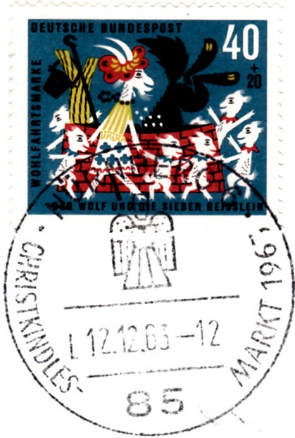 Sonderstempel aus Nürnberg vom 12.12.1963 zum Christkindlesmarkt mit dem Kennbuchstaben "l". Im Stempelbild wird wie zu dieser Zeit üblich das Christkind gezeigt.