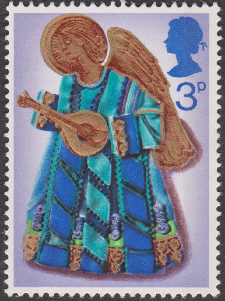 Großbritannien MiNr. 606 bis 608 zeigen Weihnachtsengel, die auf verschiedenen Instrumenten spielen: