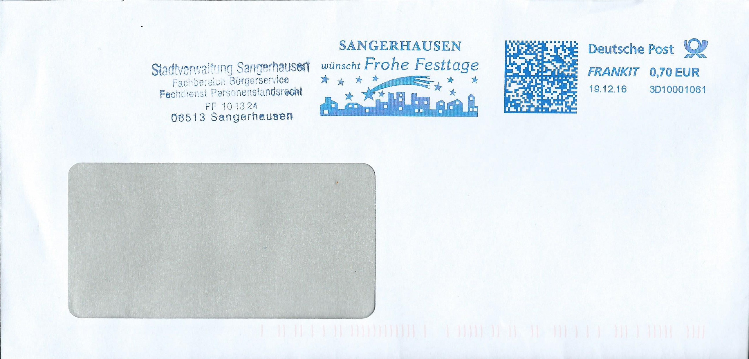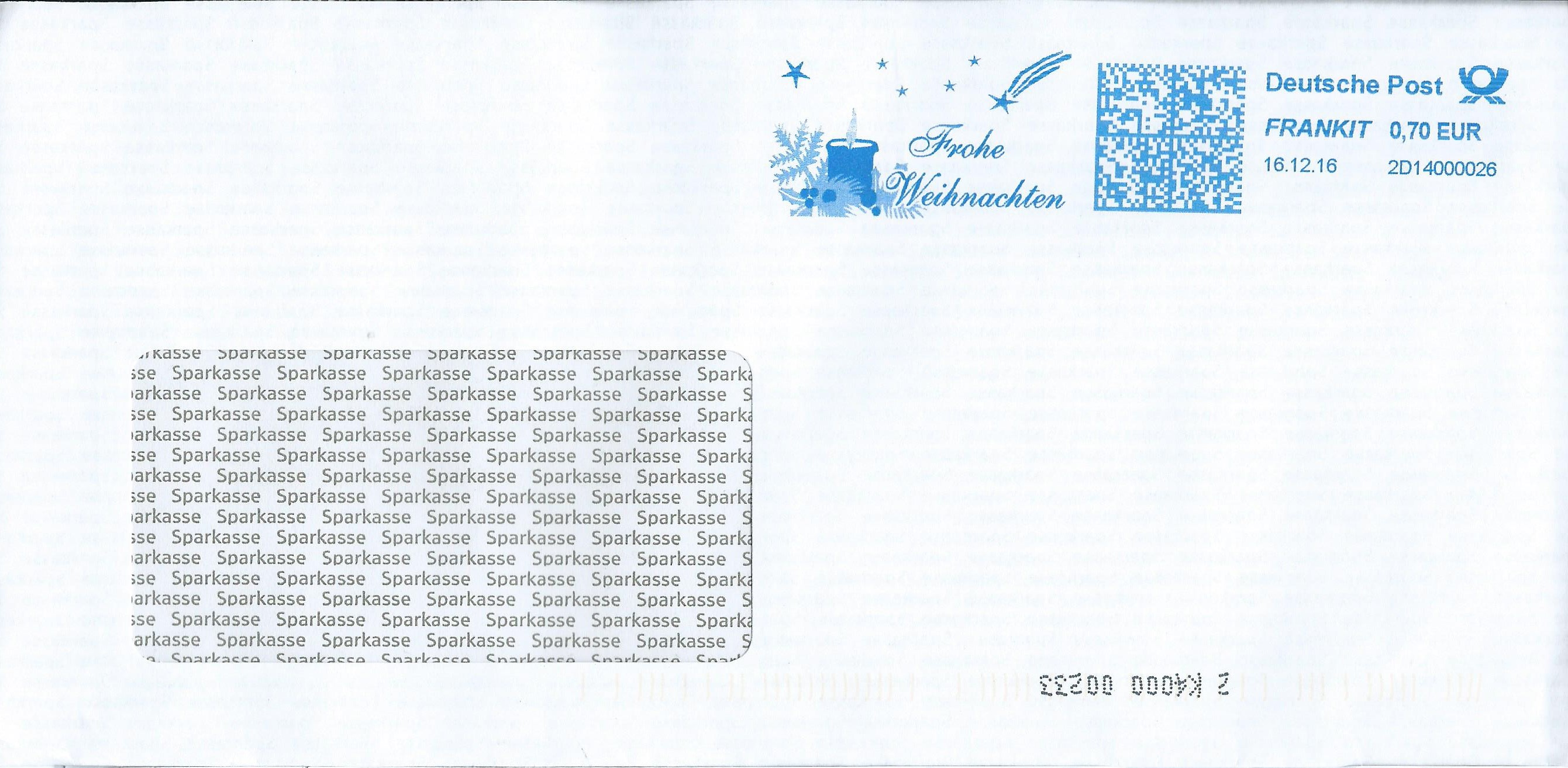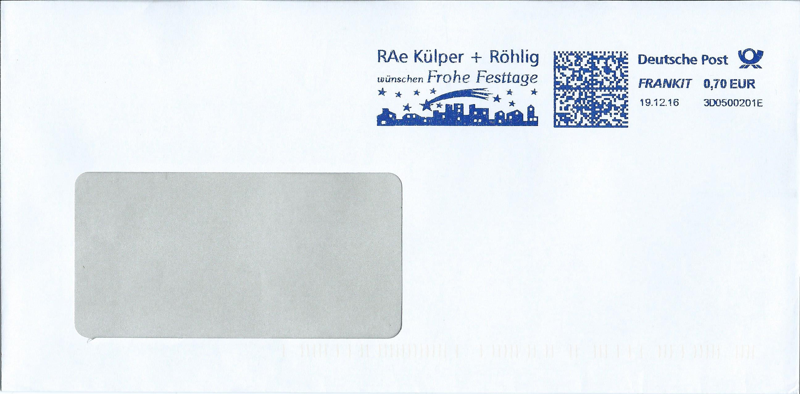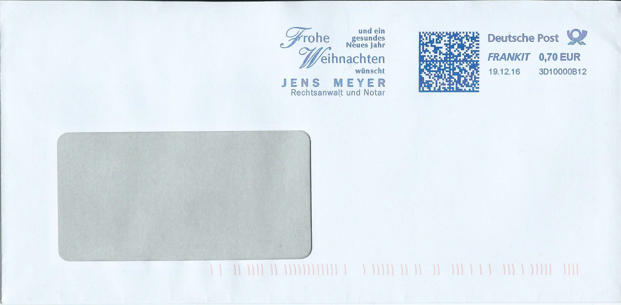 Als letzten Umschlag zeige ich einen vom 16.12.16. Dem Werbeeinsatzstempel möchte ich mich anschliessen und allen aktiven Forumsschreibern, den Moderatorenkollegen, den "Machern" der DPHj und natürlich allen Lesern hier im Forum einen Wunsch aussprechen: