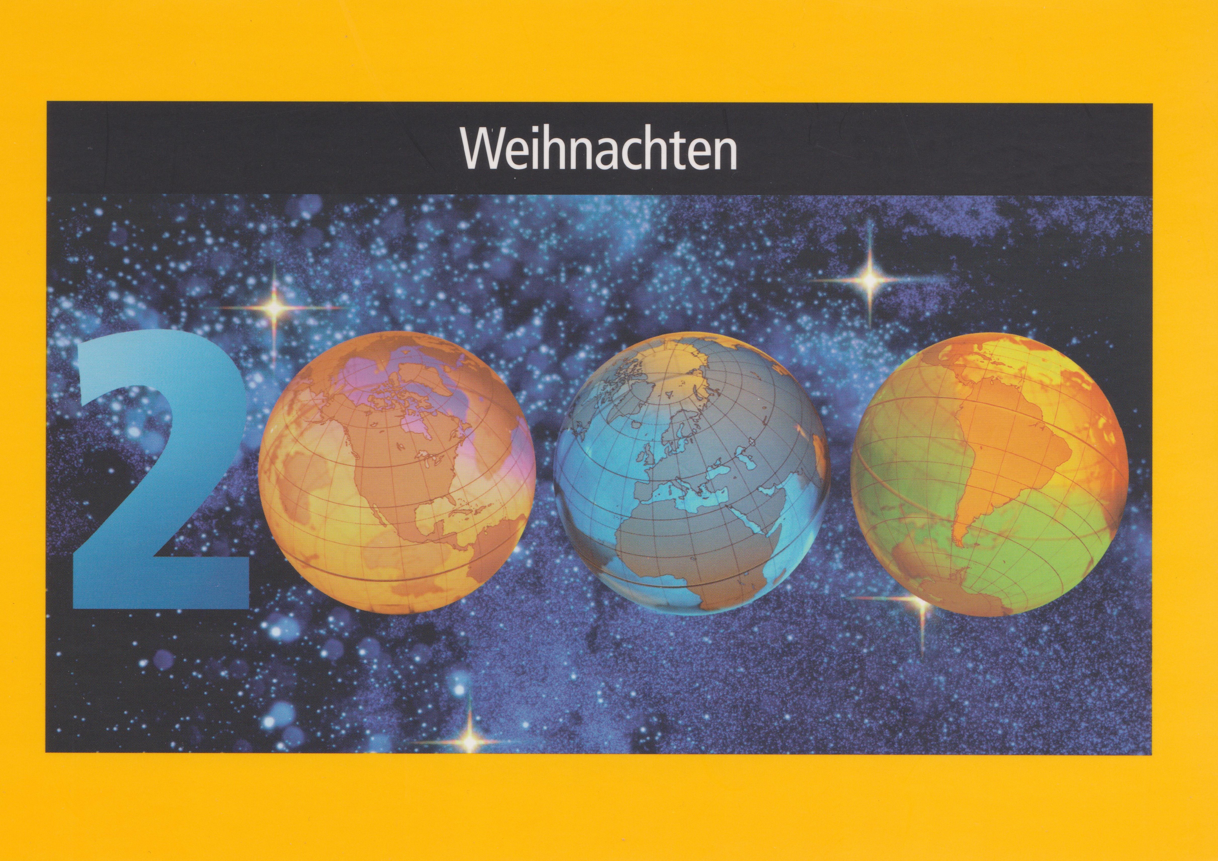 Klappkarte "Weihnachten 2000" der "Deutsche Post AG" mit Viererblocks der Weihnachtsmarken 2000: