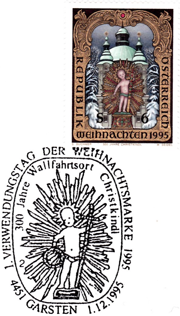 Die Weihnachtsmarke 1995 aus Österreich (MiNr 2176) zeigt das Gnadenbild in der Pfarrkirche von Christkindl und die