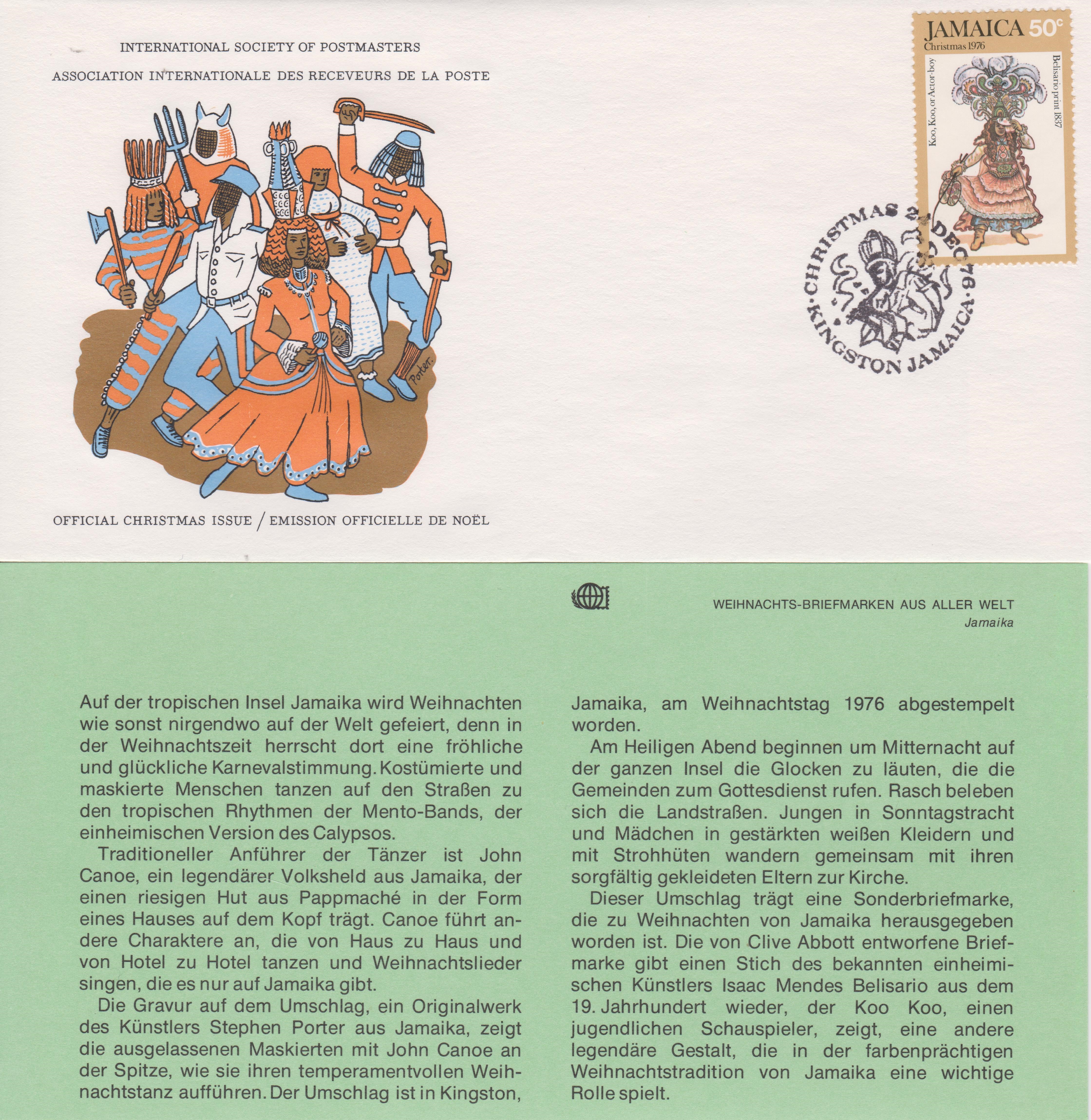 Schmuckbrief mit Sonderstempel vom 24.12.1976 aus KINGSTON JAMAICA mit Sonderstempel "CHRISTMAS":