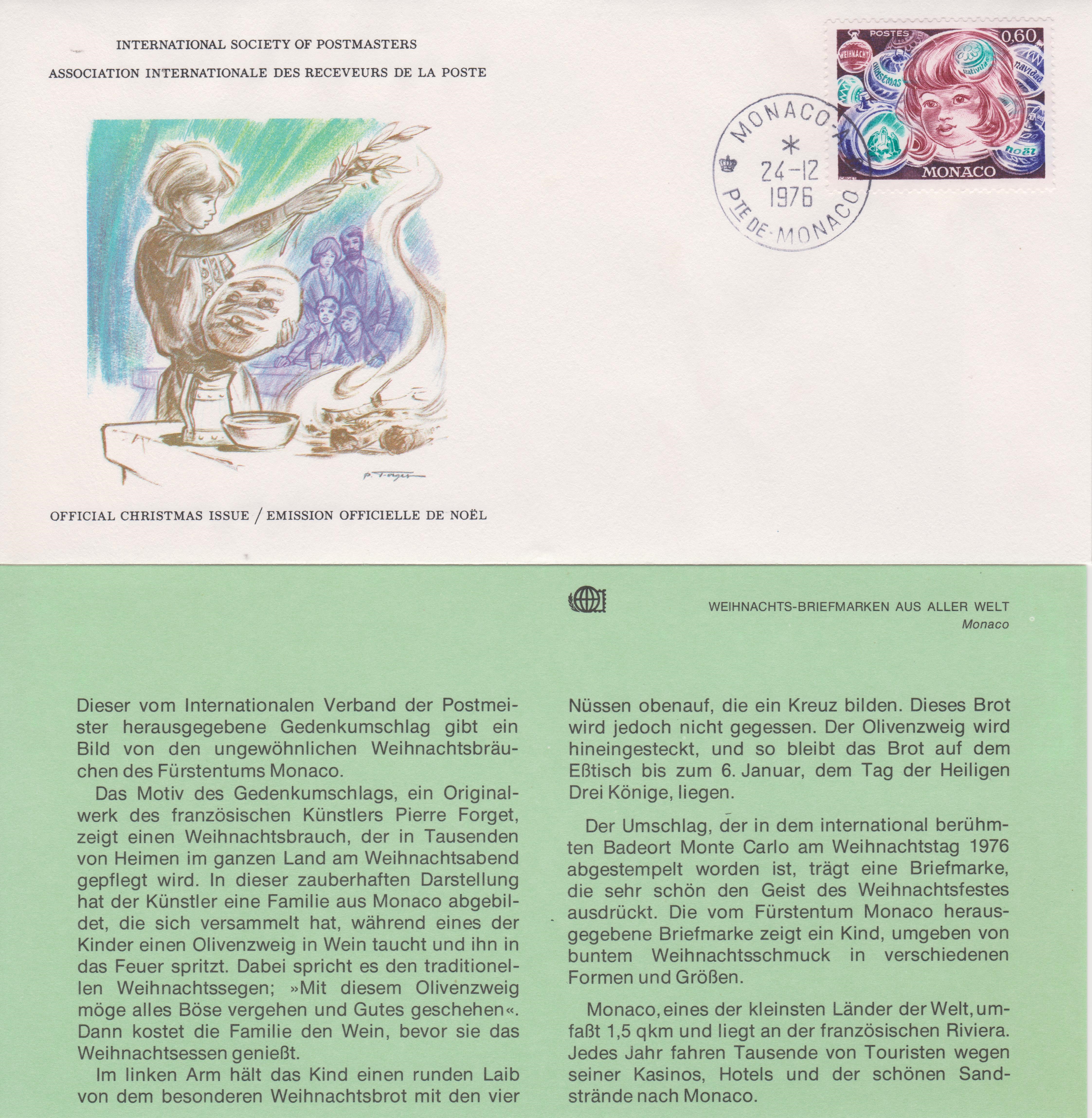 Schmuckbrief vom 24.12.1976 aus MONACO mit einem Postwertzeichen, das Chistbaumkugeln zeigt, mit Tagesstempel: