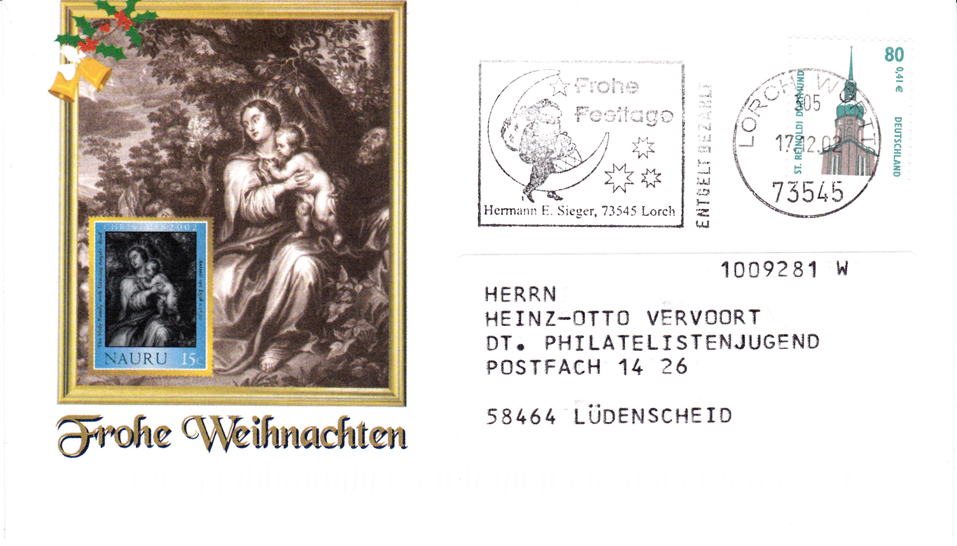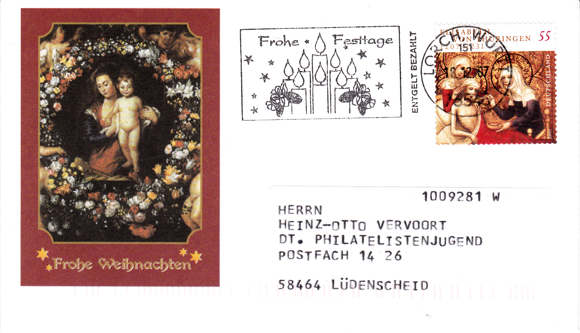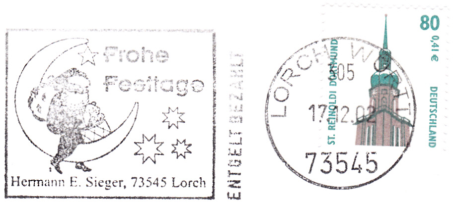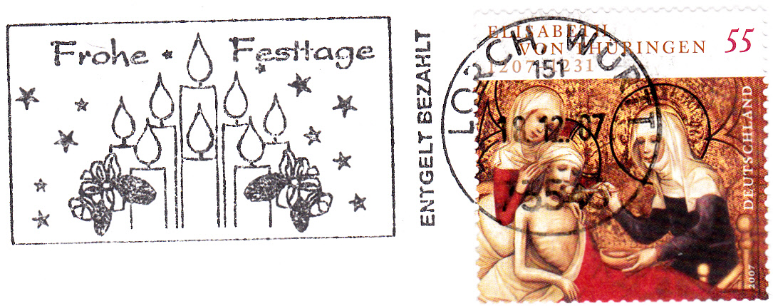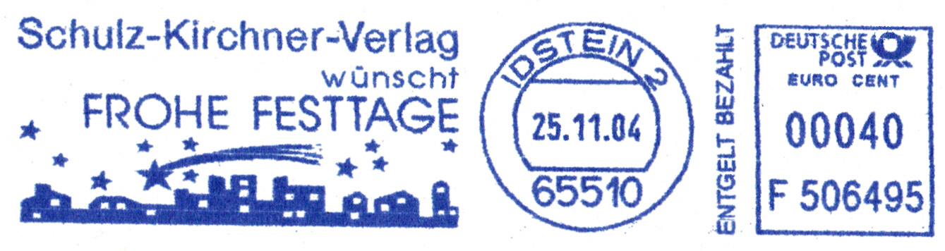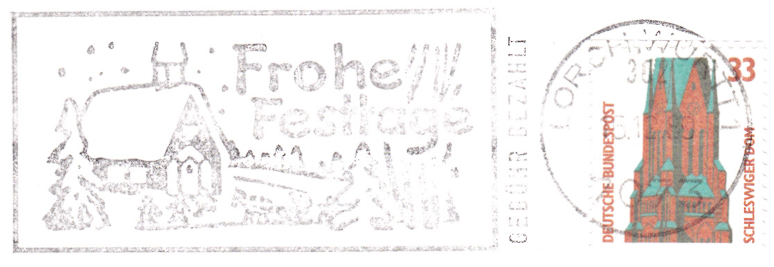 Hier mal wieder ein paar Freistempel mit Weihnachtswünsche. Als erster einer mit "Frohe Festtags" in einem bereits bekannten Muster eines Verlages aus Idstein.