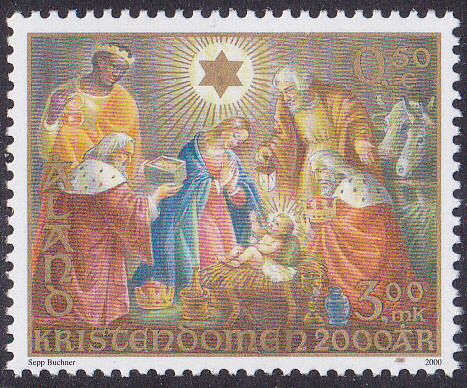 Auf den Åland-Inseln ist diese Marke (MiNr 181) zu "2000 Jahre Christentum" mit einer Krippendarstellung erschienen.